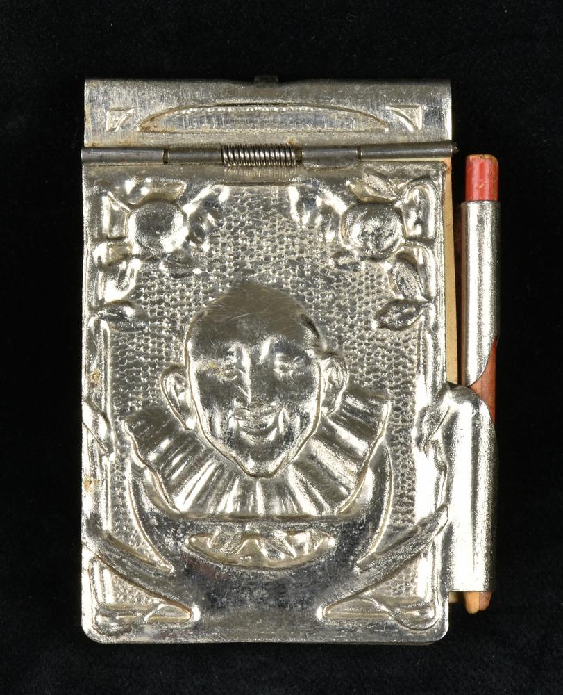 CARNET DE BAL in tole argente' raffigurante un pagliaccio con matitina avente...