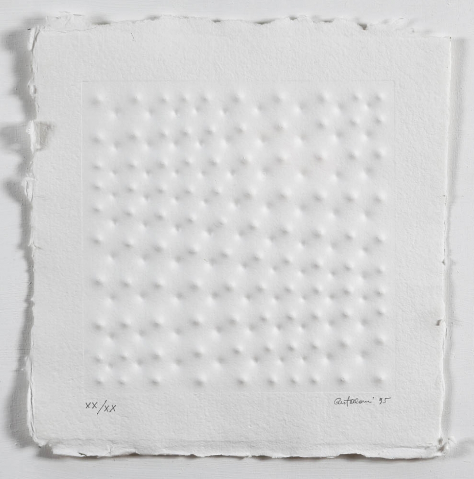 ENRICO CASTELLANI 1930 " Superficie ", 1995 Impressione a secco, cm. 30 x 31 Firmato e datato in basso a destra Tiratura a 100 esemplari  Opera n. XX/XX Prov. Collezione Privata