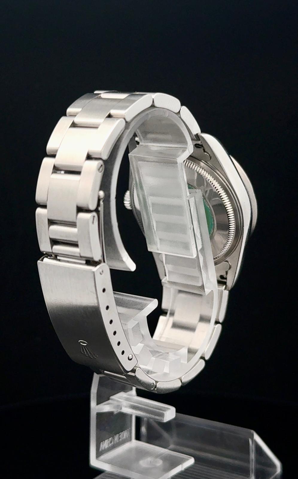 Marca Rolex Modello (Orologio) Air King Numero di referenza 14010 Carica Automatico Materiale della cassa Acciaio Materiale cinturino Acciaio Anno di produzione 1997 Condizione Ottimo (di seconda mano, segni di usura assenti o appena visibili) Corredo documenti originali, no box Cassa Materiale della cassa Acciaio Diametro 34 mm Impermeabile 10 ATM Materiale lunetta Acciaio Vetro Vetro zaffiro Quadrante Argento Numeri sul quadrante Senza numeri Cinturino Materiale cinturino Acciaio Colore cinturino Acciaio Chiusura Déployante Materiale chiusura Acciaio