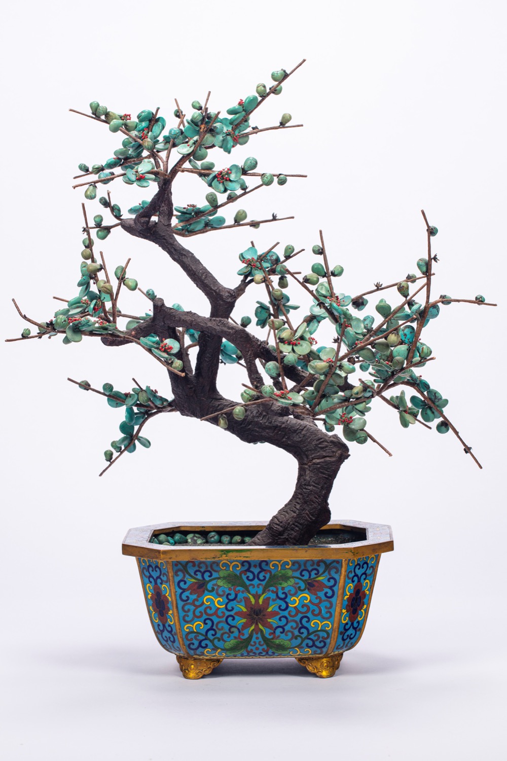 Alberello con cachepot in smalto cloisonné. Cina, fine dinastia Qing