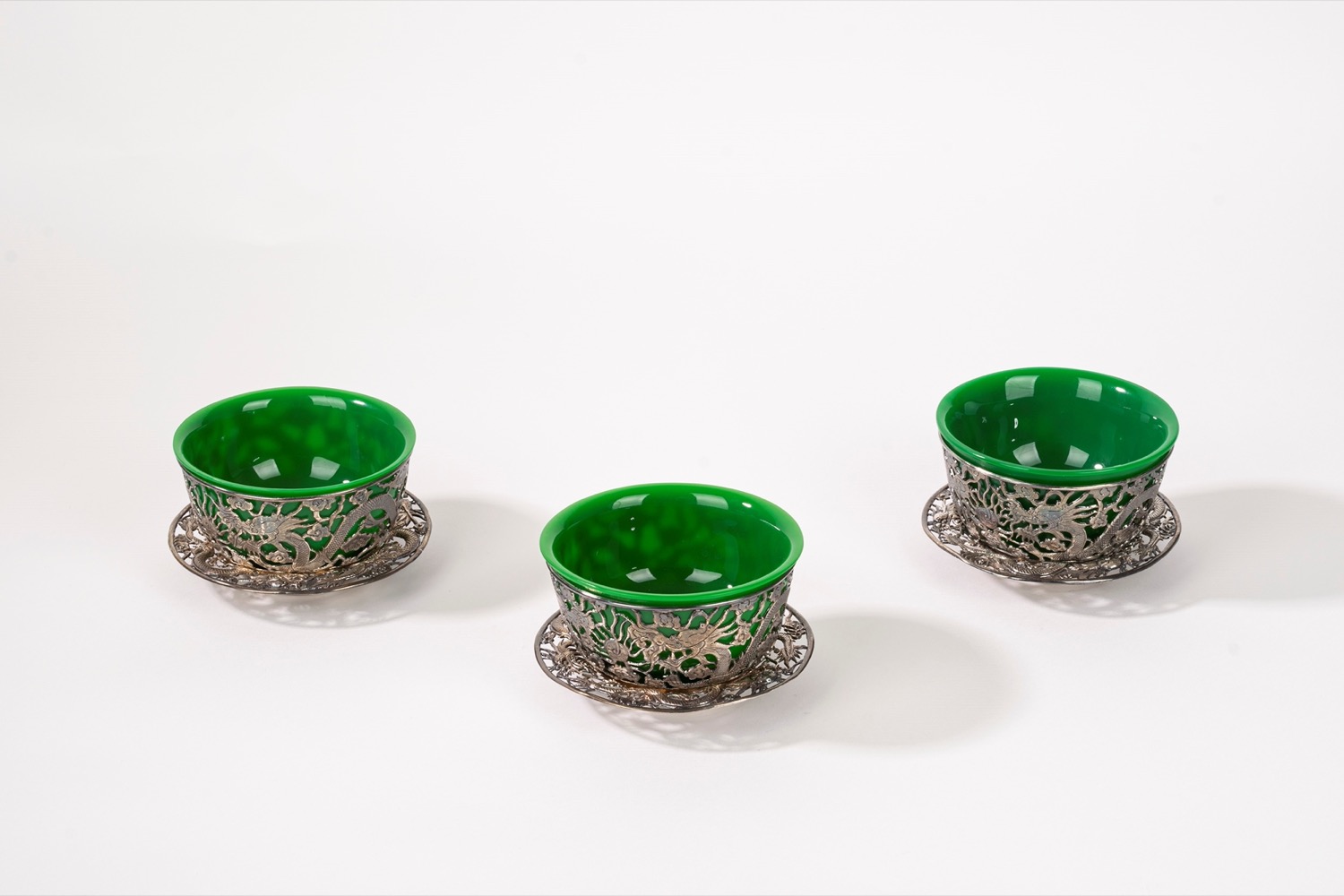 una ciotola danneggiatacon ciotola interna in vetro verde.