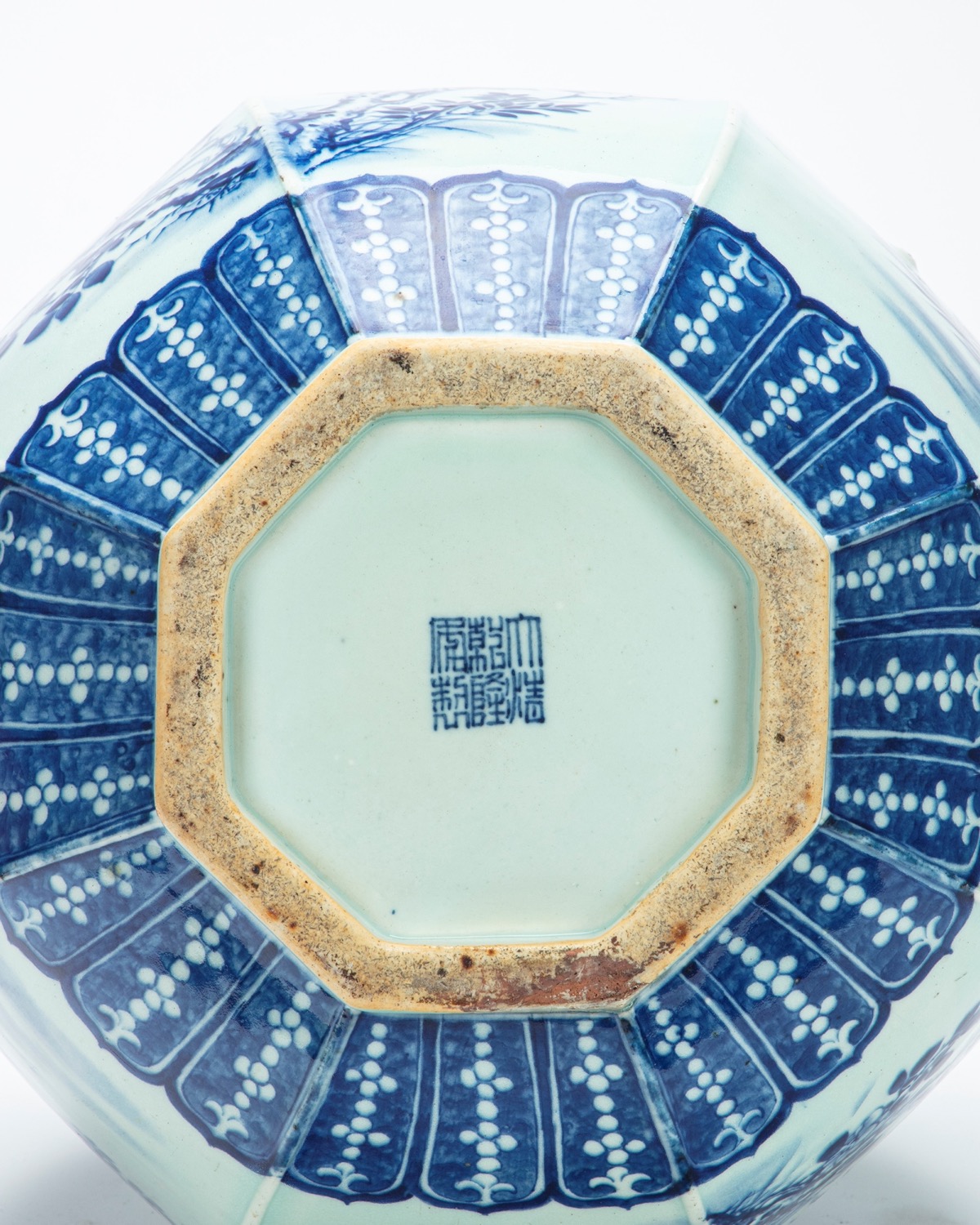 Grande vaso in porcellana bianca e blu. Cina, fine XIX secolo