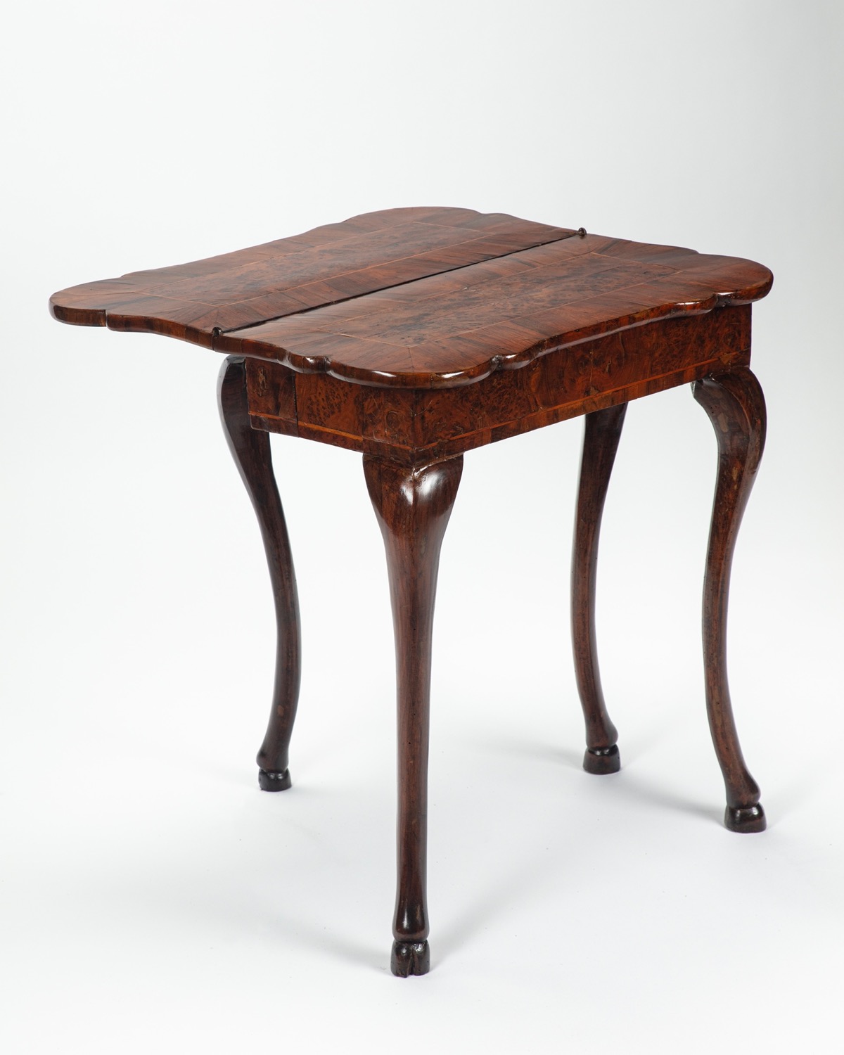 Tavolino da gioco lastronato in noce, radica di noce e filettato. Emilia, secolo XVIII