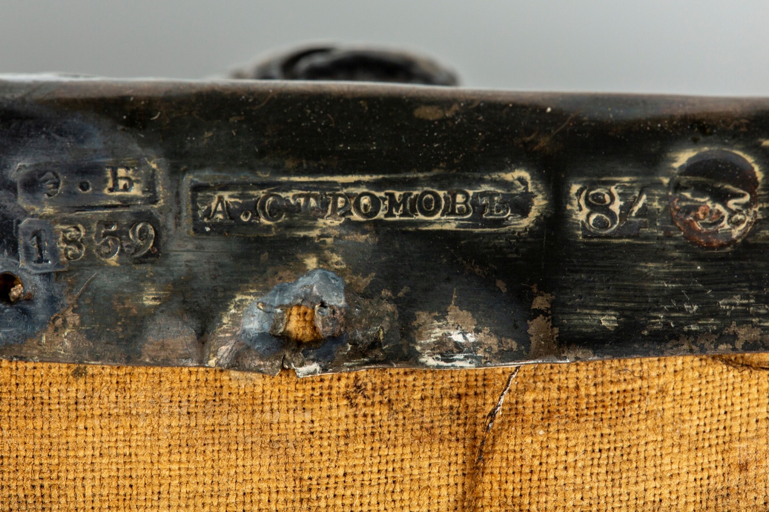 La riza sbalzata a volute e motivi floreali, le aureole a raggiera. Assaggiatore Eduard Fyodorovich Brandenburg, 1859, punzone dell'argentiere.La riza sbalzata a volute e motivi floreali, le aureole a raggiera. Assaggiatore Eduard Fyodorovich Brandenburg, 1859, punzone dell'argentiere.