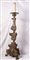 Candeliere d'altarein lamina di metallo argentato. Parti a rilievo ed incise. Di forma triangolare con tre piedi da appoggio zoomorfi