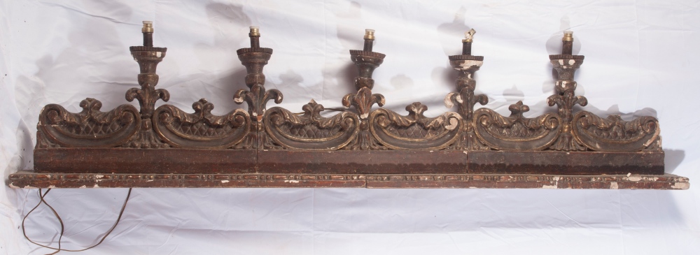 Fregio a cinque luci in legno intagliato XIX secolo 160 x 14 x 14 cm