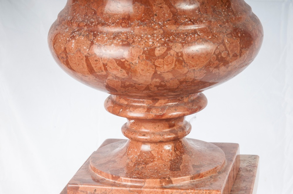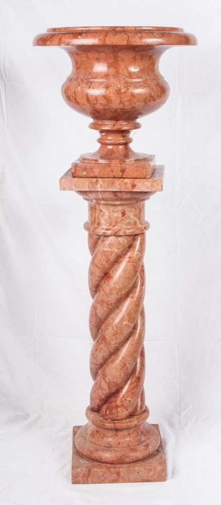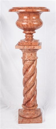 Vaso a campana con colonna tortile come basamentoin marmo rosa di Verona.