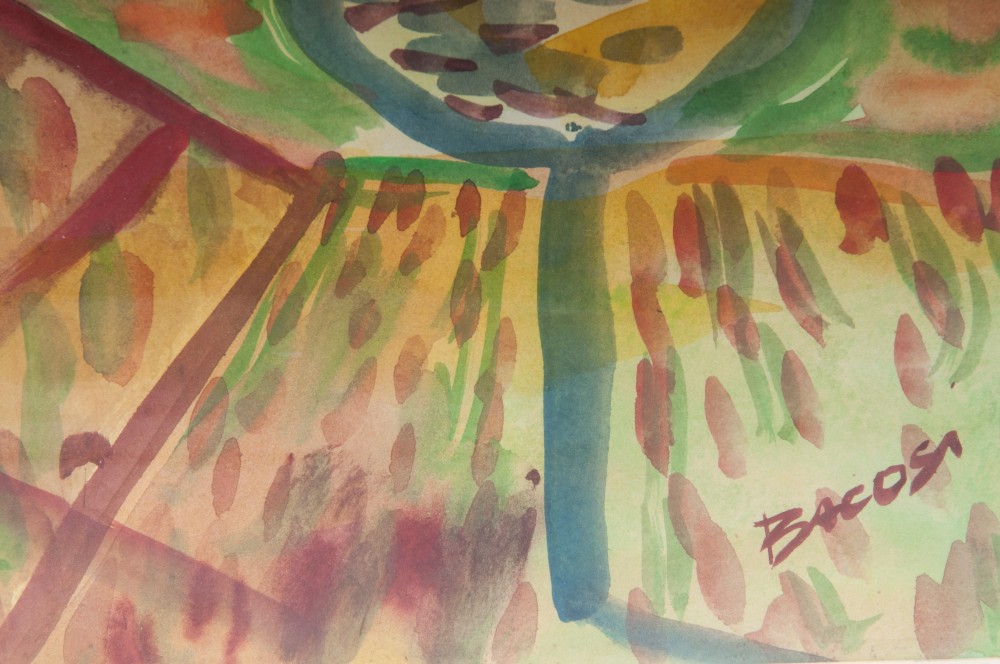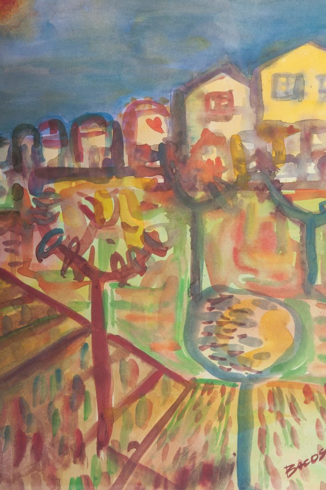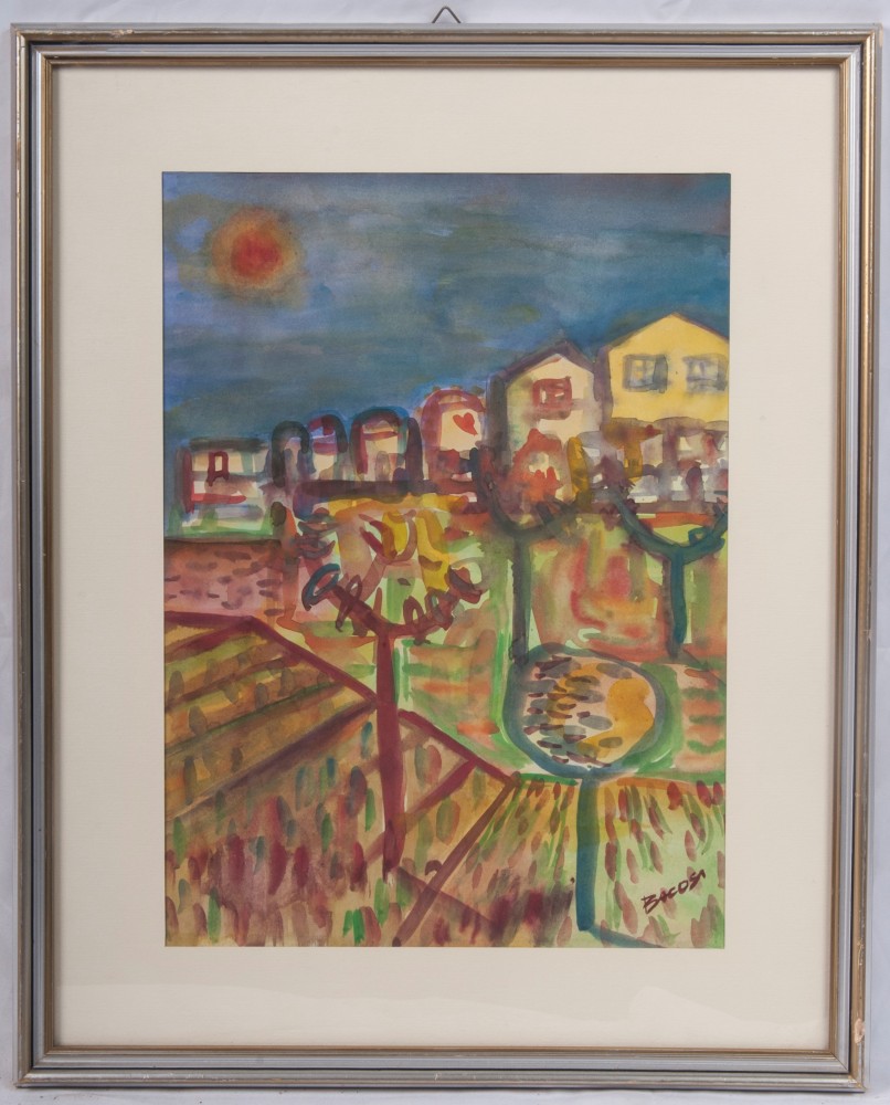 MANLIO BACOSI (Perugia, 1921 - 1998) Paesaggio urbano Acquarello su carta, 39 x 28 cm