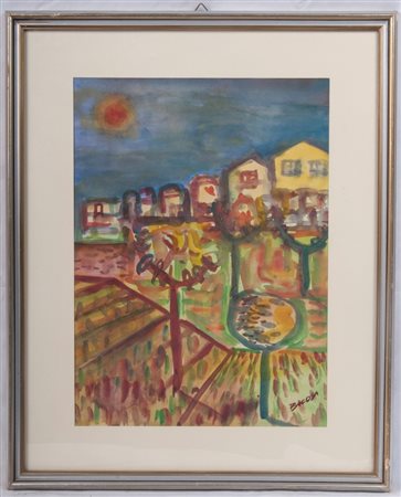 Paesaggio urbanofirmato in cornice. Con autentica della galleria il Fauni di Roma, firmata dall'artista.
