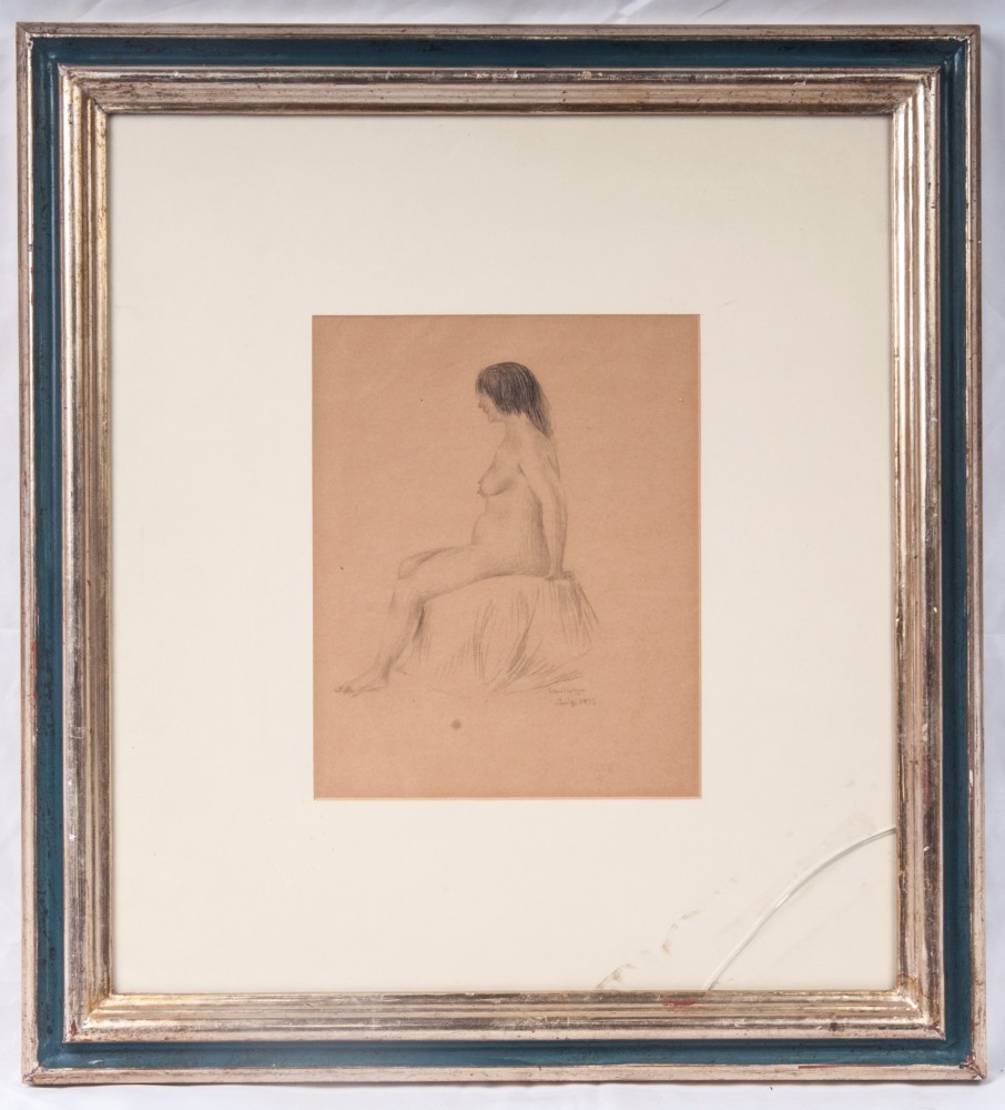 Nudo di donnafirmato, datato in cornice. Con autentica della galleria d'arte la Sfinge di Mauro Borgiani.