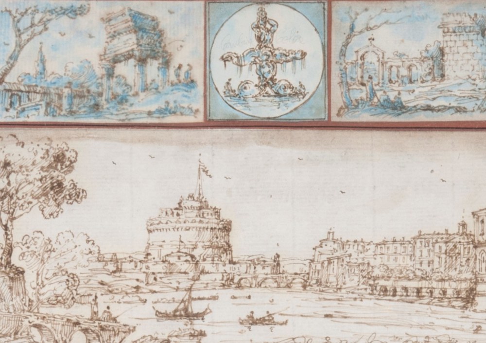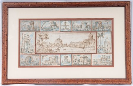 Veduta di Roma XIX secolo Acquarello e inchiostro su carta vergata 18 x 38 cm