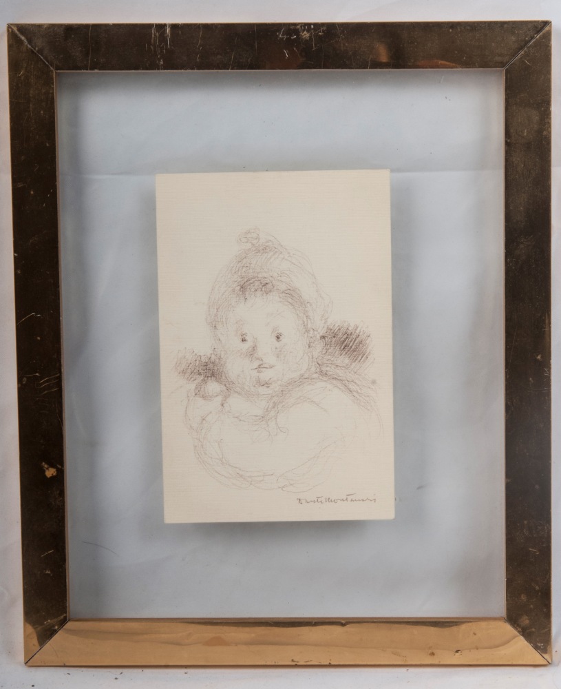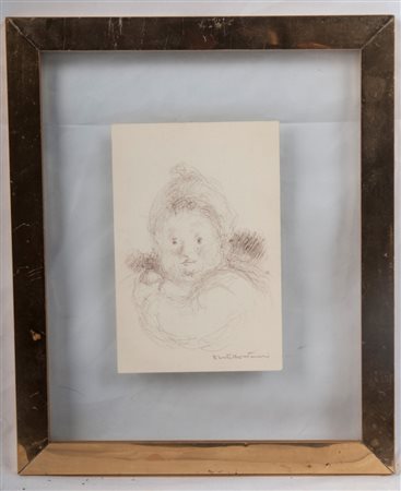 Testa di bimbafirmato in cornice. Al retro con dedica