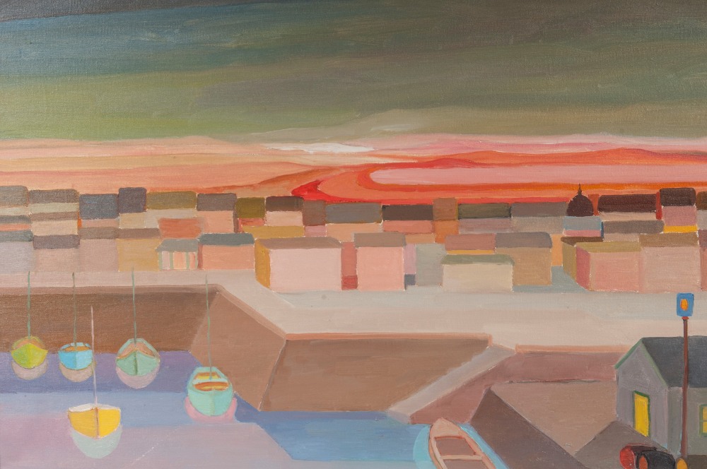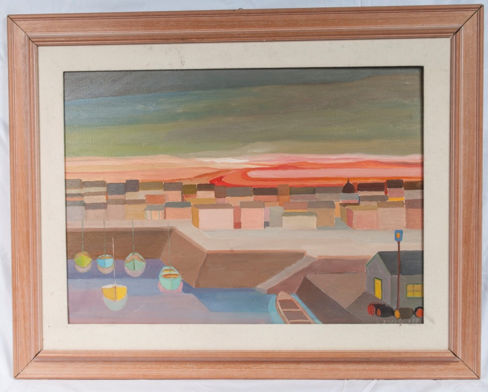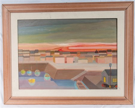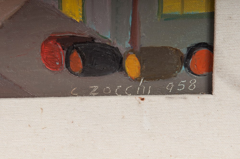 CARLO ZOCCHI (Milano, 1894 - 1965) Veduta di porto 1958 dipinto ad olio su tela 50 x 70 cm