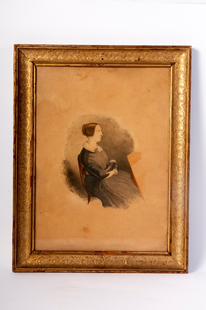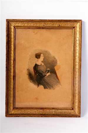 Autoritratto di gentildonna XIX secolo disegno acquarellato su carta 36 x 28 cm