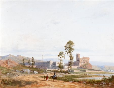 GABRIELE CARELLI (Napoli, 1820 - Mentone, 1900) Verso il Forte Acquarello su cartoncino 20 x 26 cm
