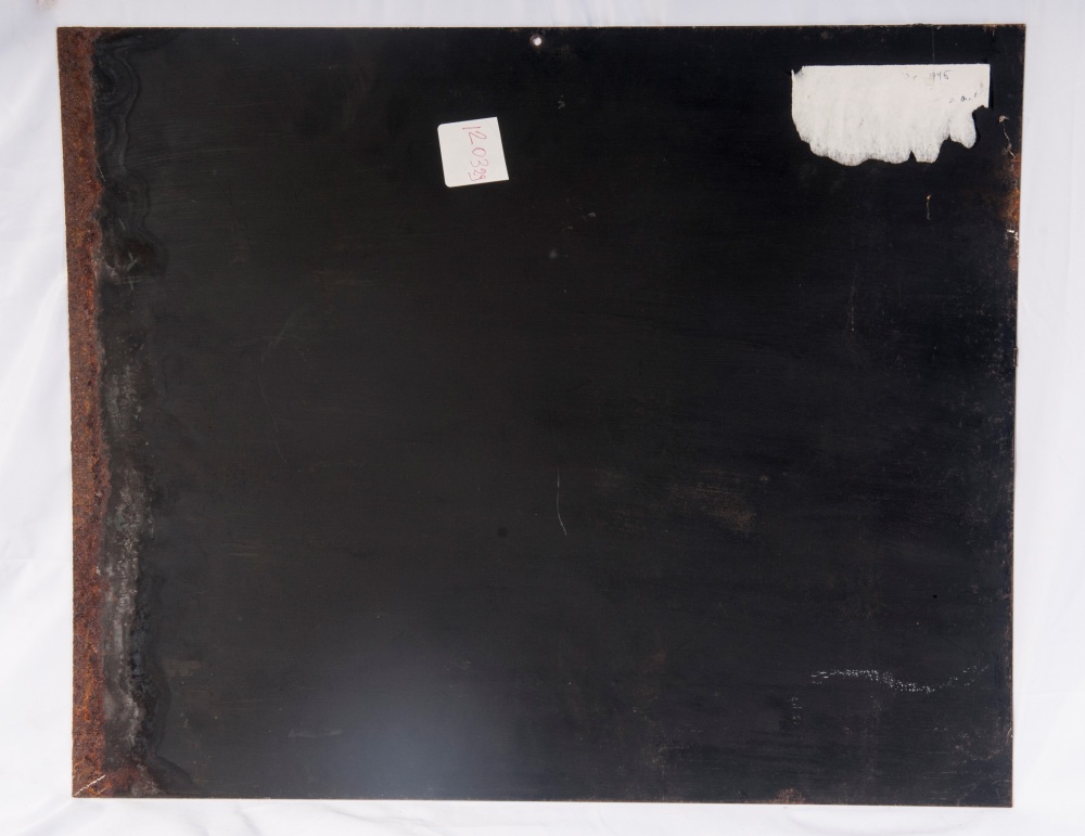 Senza titoloscultura ad elementi informali in rame ed ottone applicati su piastra in metallo nero. Firmata e datata