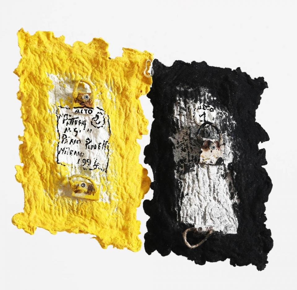 PINO PINELLI 1938 " Pittura N. G. ", 1994 Pittura su 2 elementi, cm. 25 x 16 (cadauno) Firmato e datato sul retro Prov. Collezione Privata