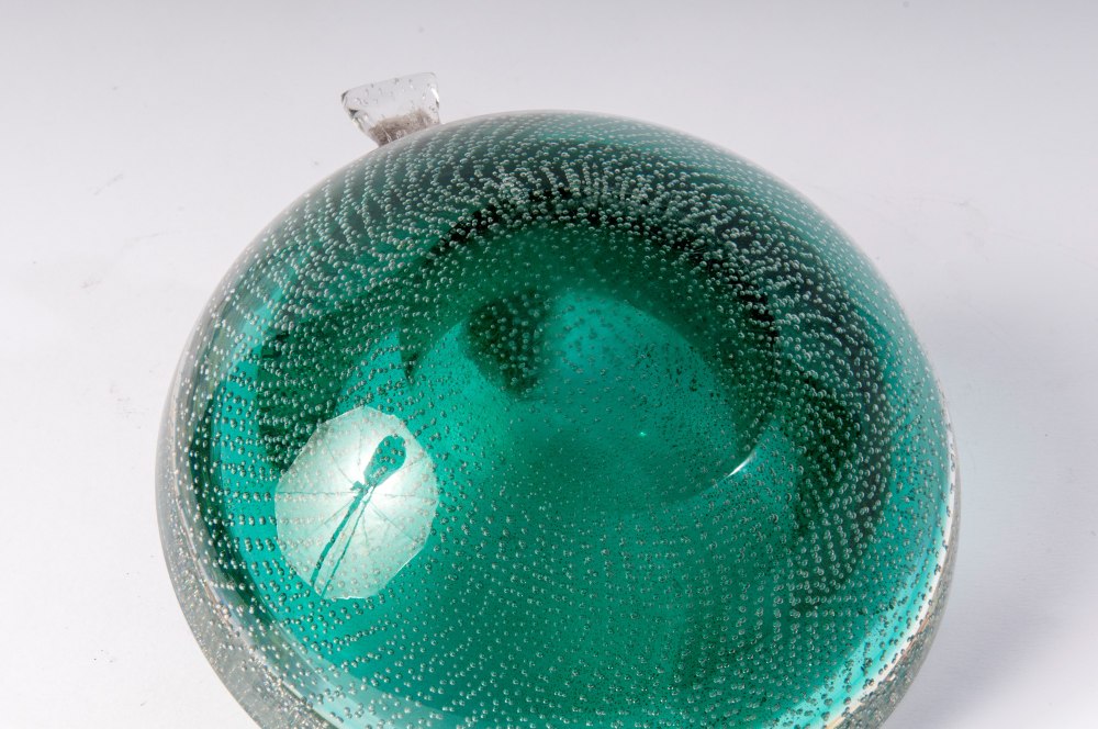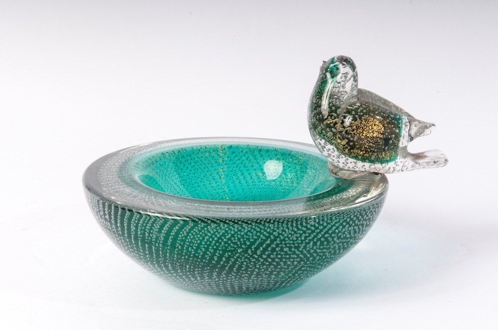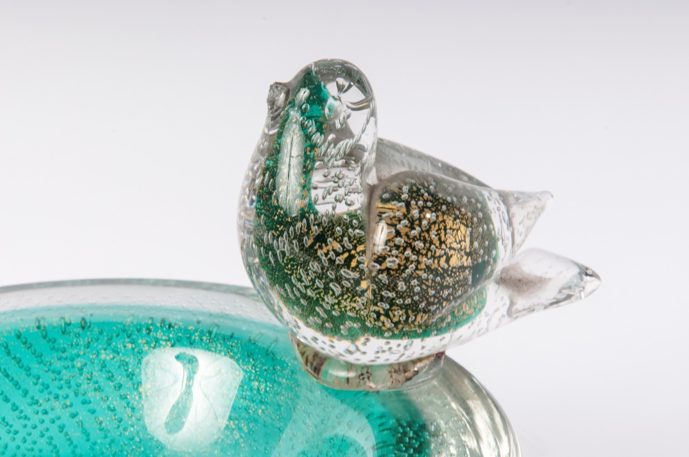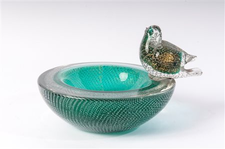 Posacenere in vetro pulegoso di Muranodi forma semisferica con colomba.