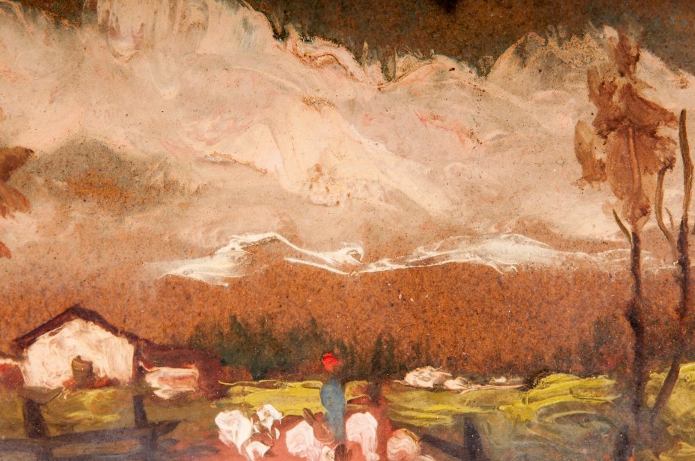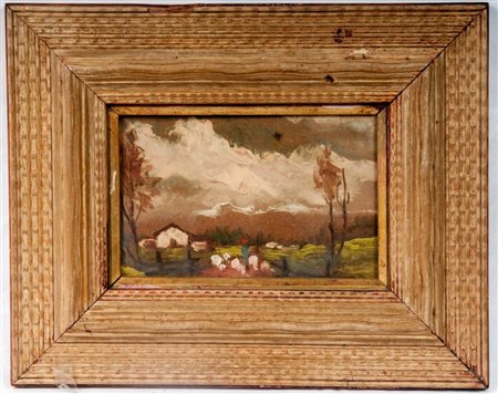 Paesaggio XX secolo dipinto ad olio su cartone 16,5 X 23,5 cm
