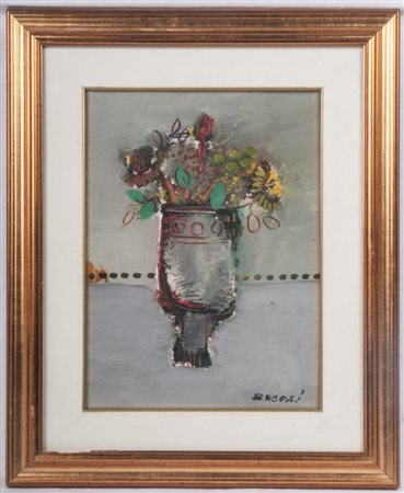 MANLIO BACOSI (Perugia, 1921 - 1998) Vaso con fiori dipinto ad olio su tela, 40 x 30 cm