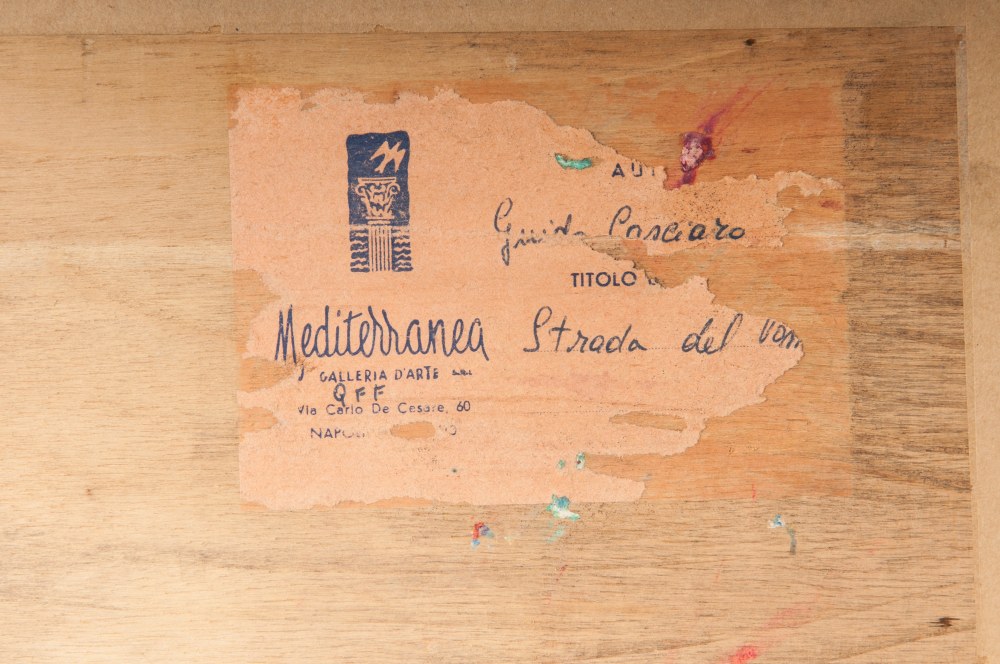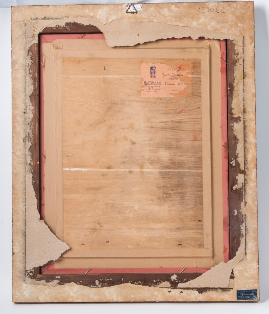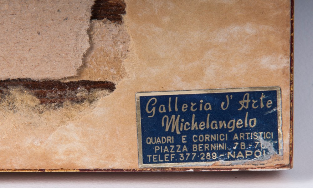 Strada del Vomeroin cornice, firmato. Al retro etichetta galleria d'arte "Mediterranea"