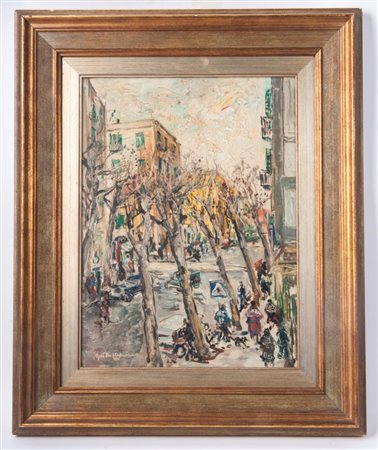 GUIDO CASCIARO (1900 - 1963) Strada del Vomero dipinto ad olio su tavola 40 x 30 cm