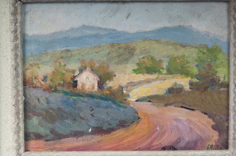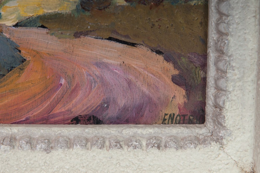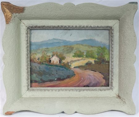 ENOTRIO PUGLIESE (Buenos Aires, 1920 - Pizzo, 1989) Paesaggio lacustre con alberi dipinto olio su tavola 15 x 20 cm