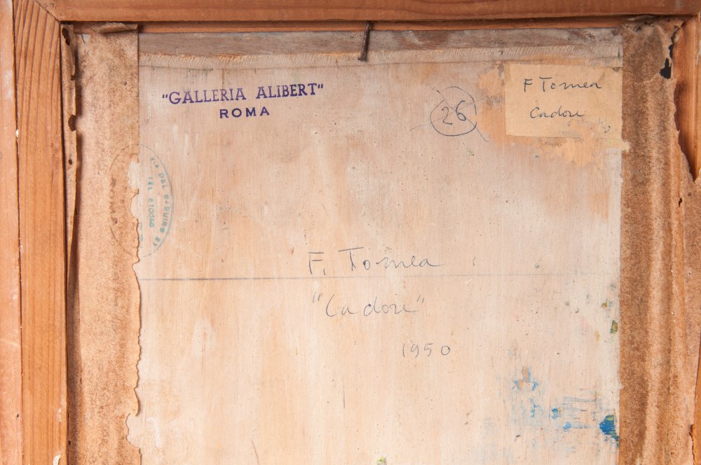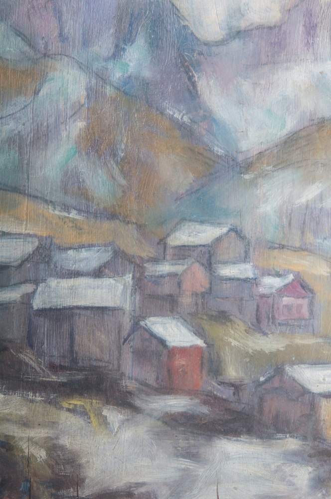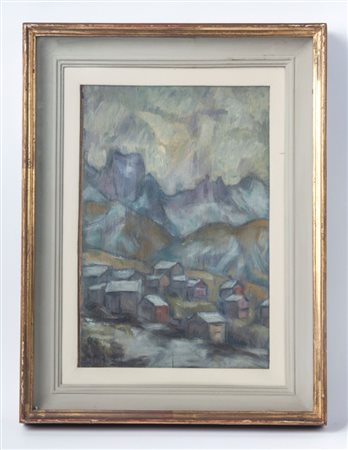 FIORENZO TOMEA (Zoppè di Cadore , 07/02/1910 - Milano, 16/11/1960) "Cadore" 1950 dipinto ad olio su tavola 34 x 22 cm