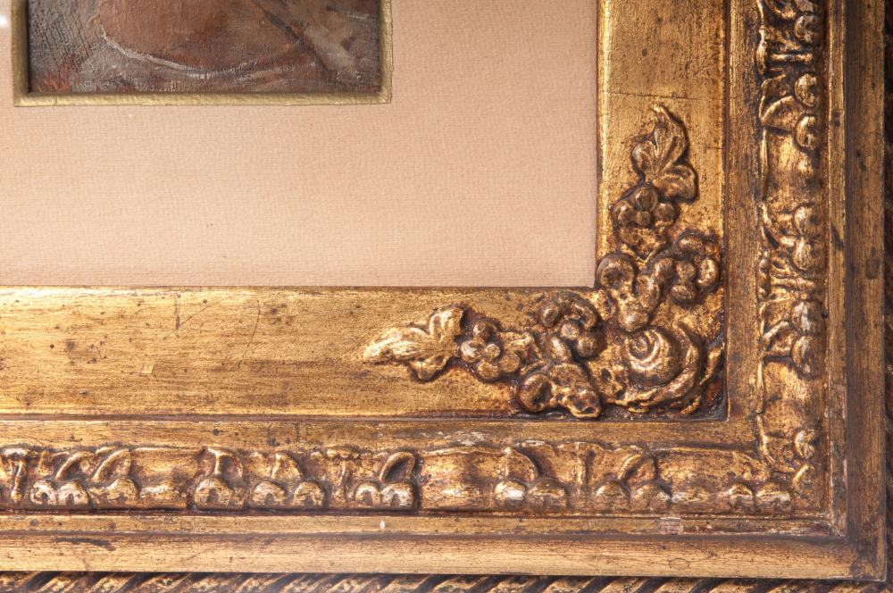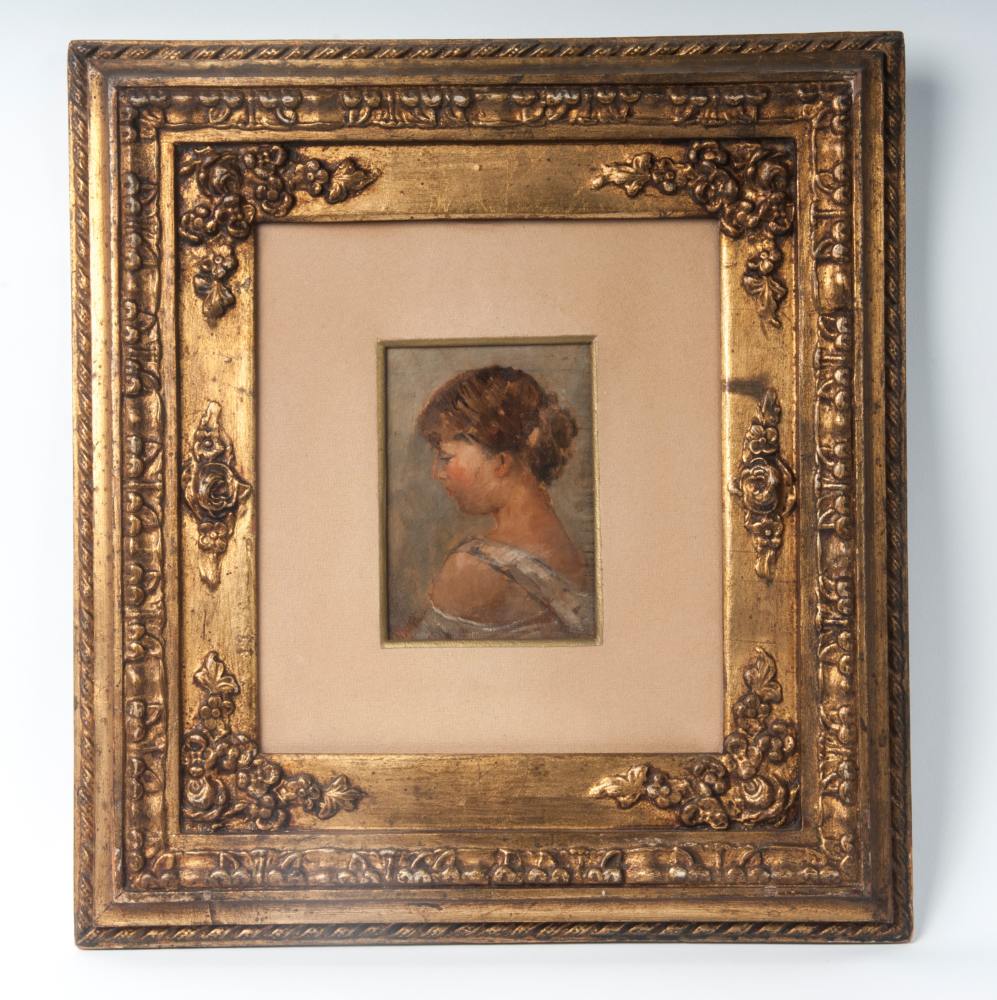 Profilo di fanciullain cornice in legno dorato coeva, firmato al retro.