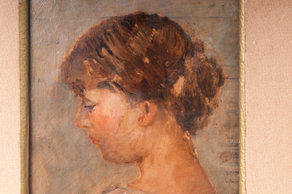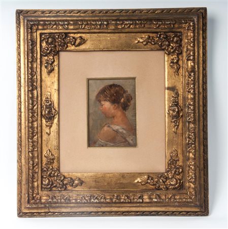Profilo di fanciulla inizio XX secolo dipinto olio su tavola 15 x 10,5 cm