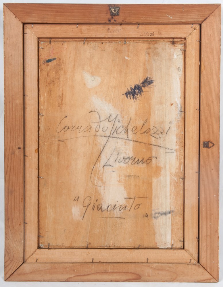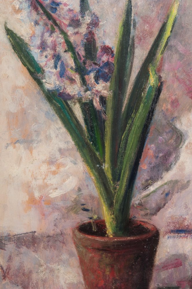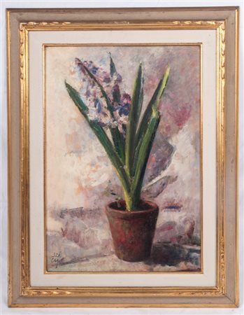 CORRADO MICHELOZZI (1883 - 1965) Giacinto 1956 dipinto ad olio su tavola 50 x 34 cm