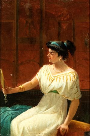 FRANCESCO NETTI (attribuito a) (Santeramo in Colle, 1832 - 1894) Donna in costume romano Olio su tavola 31 x 21 cm
