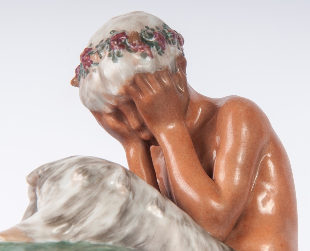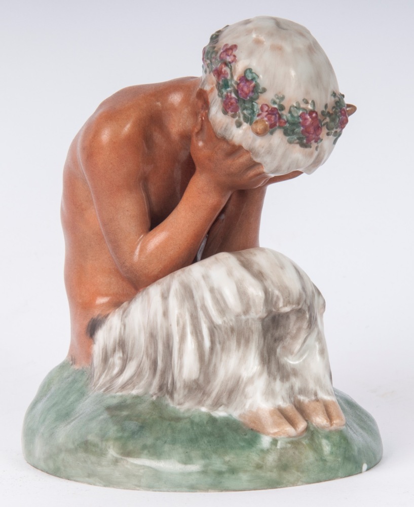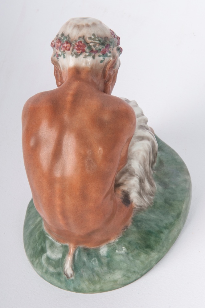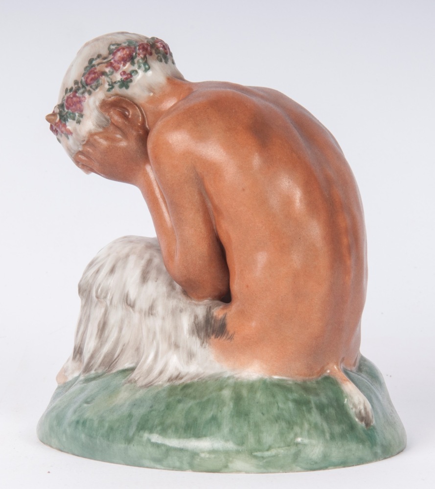 Satiro, scultura in volumein porcellana policroma. Marchio della manifattura in blu sotto smalto alla base Royal Copenhagen