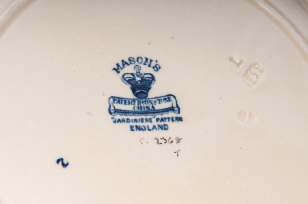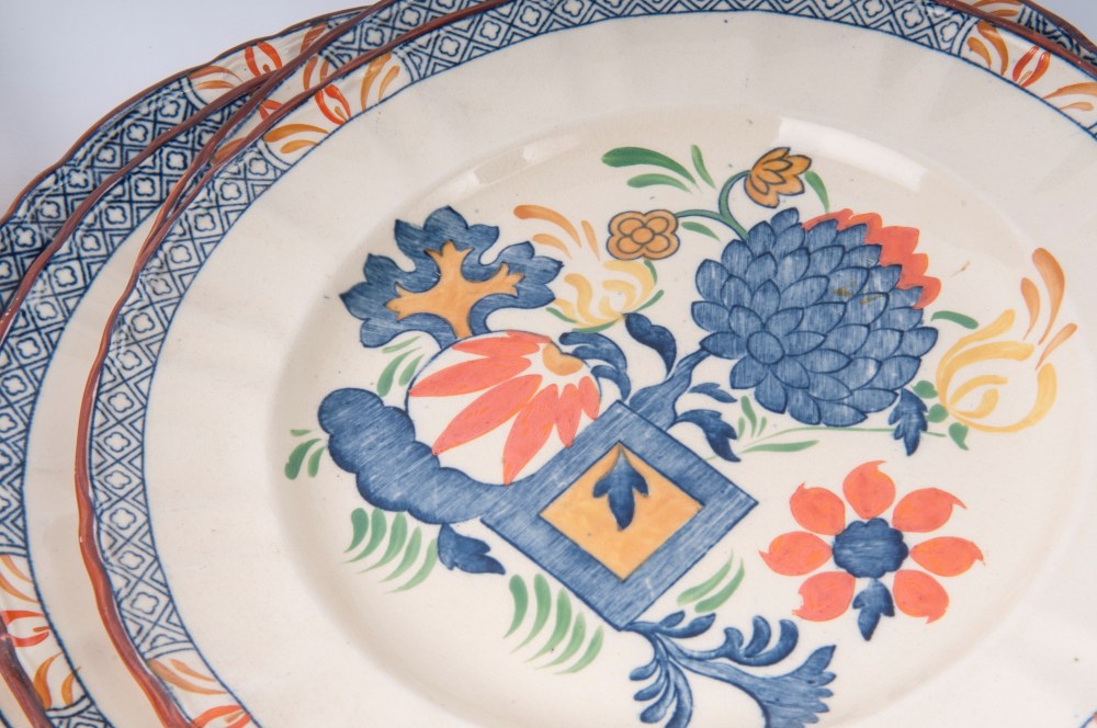 Lotto di sette piattiin ceramica policroma con decoro floreale su fondo crema. Manifattura Mason' s