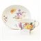 Tazza con piatto in porcellana bianca con decoro a fiori,tazza a campana con presa ad ansa. Manifattura di Meissen