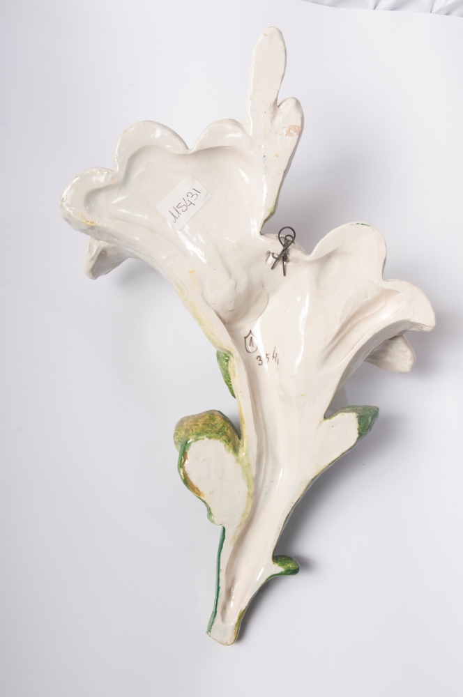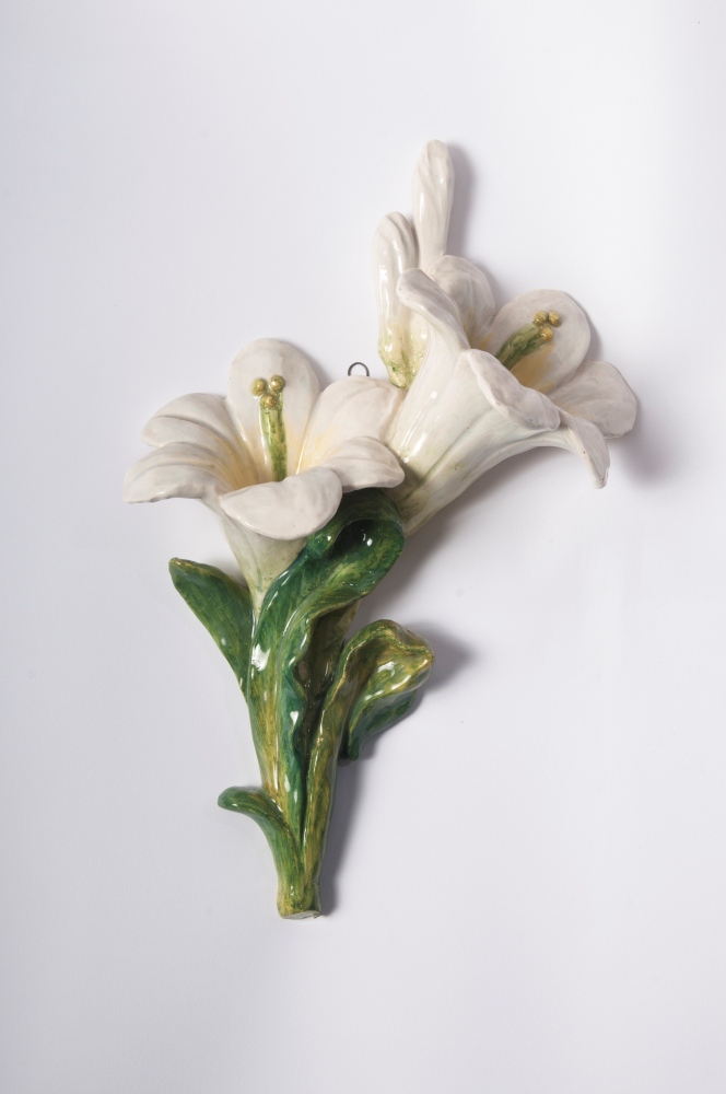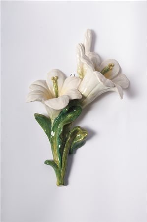 Decoro floreale a rilievoin ceramica policroma, da parete ,manifattura Egisto Fantechi.