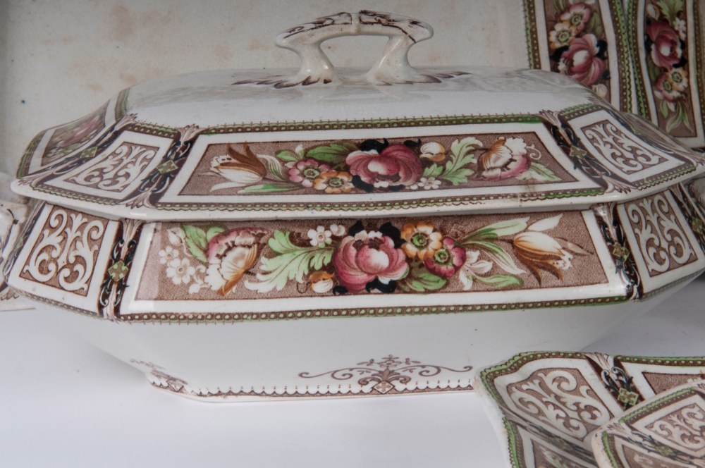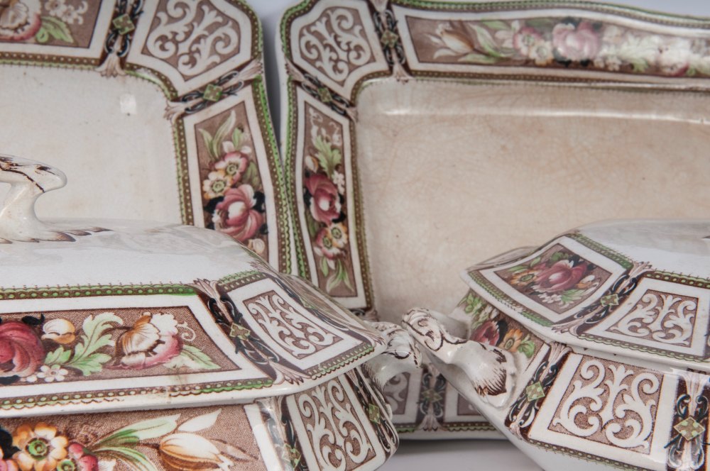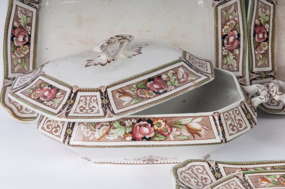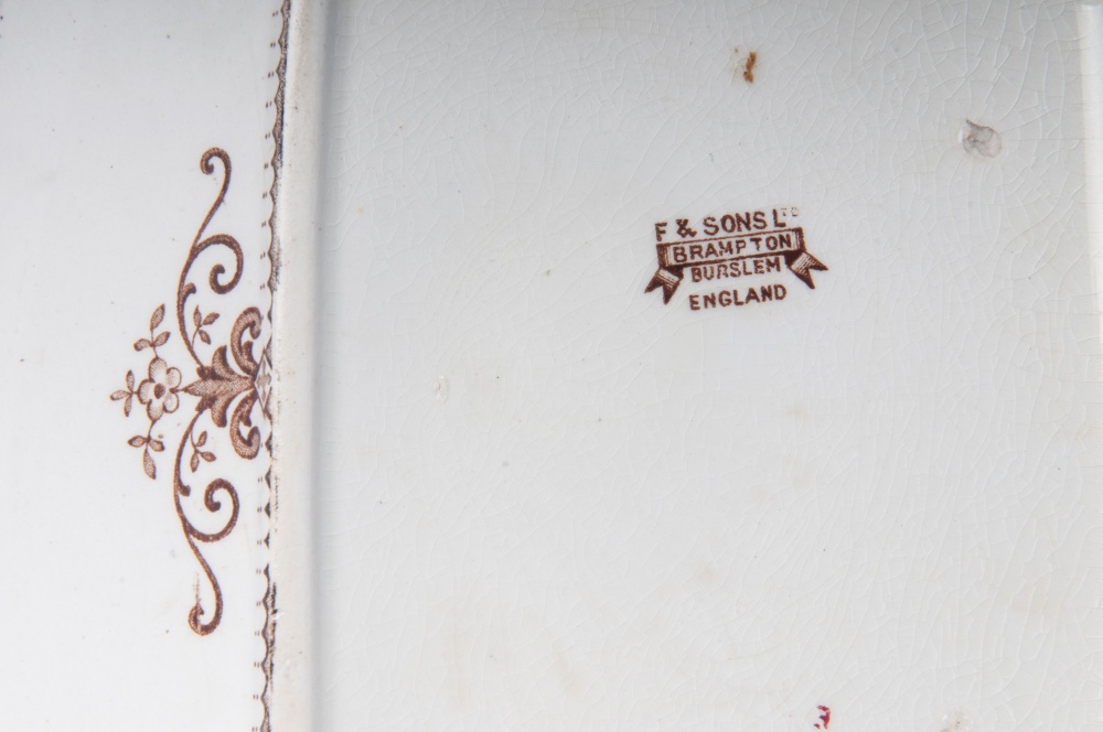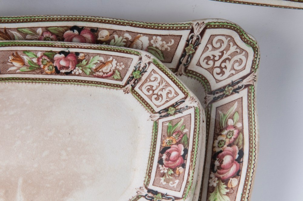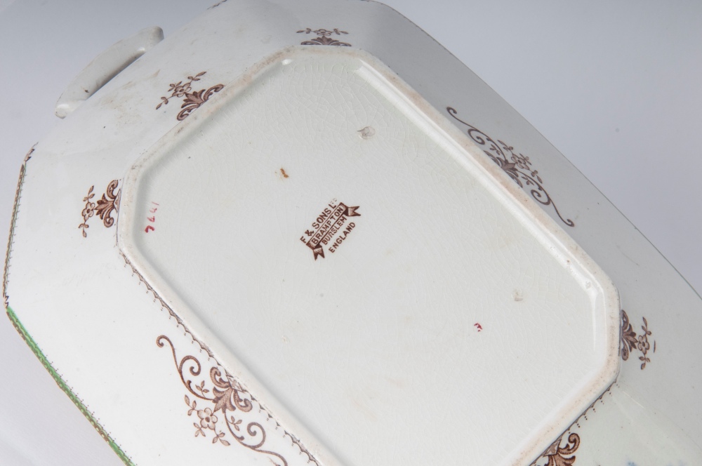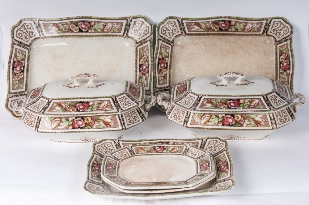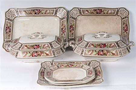 Lotto di due terrine ottagonali con sette vassoien suite a misure diverse. Manifattura Brampton Sons