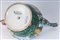 "Bevi se puoi"in ceramica policroma con decoro a pavoni, foglie ed arbusti. Di forma globulare rastremata verso il basso con piede a disco, versatoio a virgola e manico a chiocciola. Firmato alla base sotto smalto Bolzonetti Fabriano.