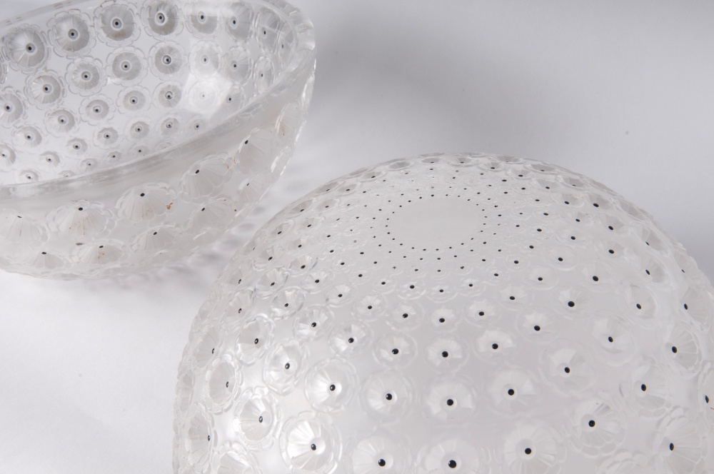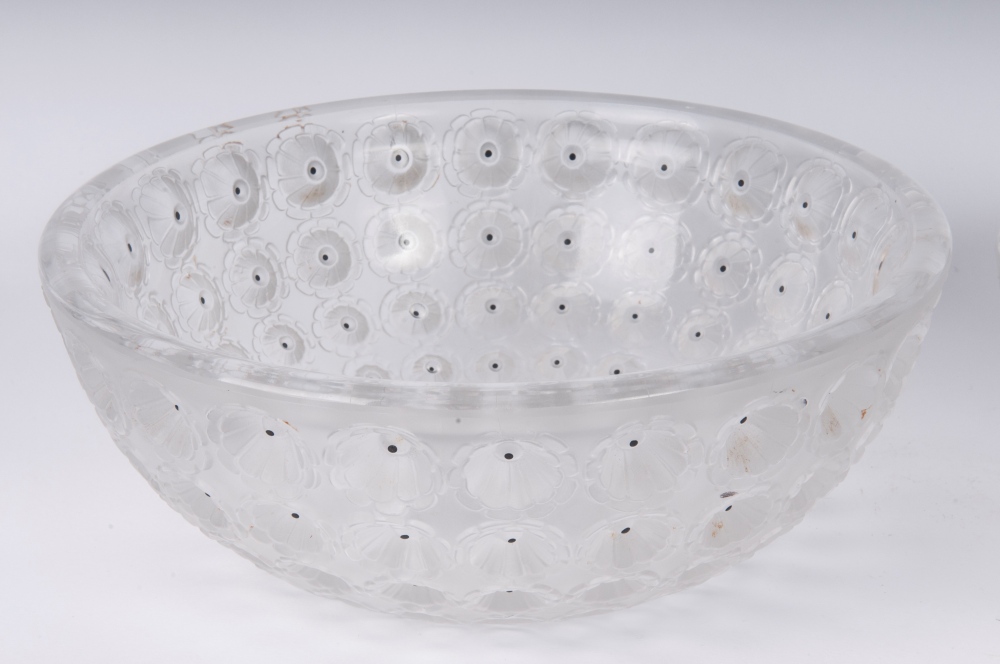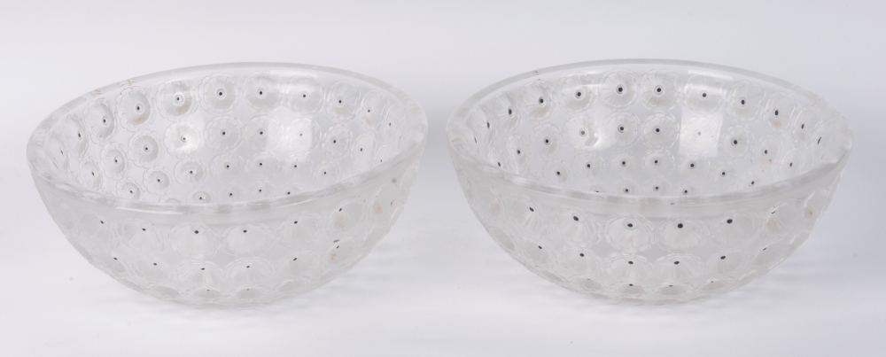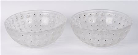 Coppia di vasche emisferichein cristallo a roselline concave. Manifattura Lalique, seconda metà XX secolo