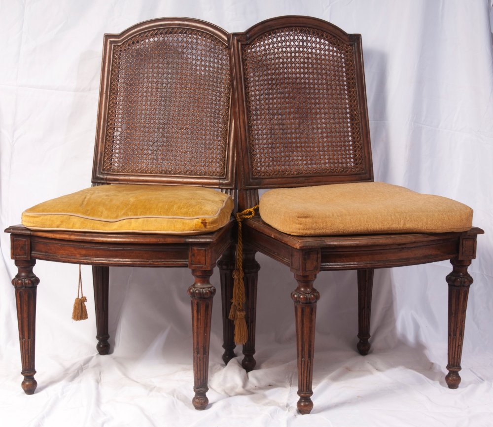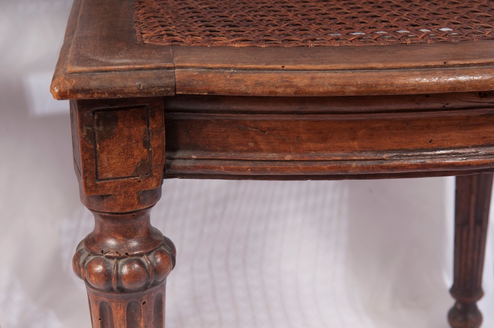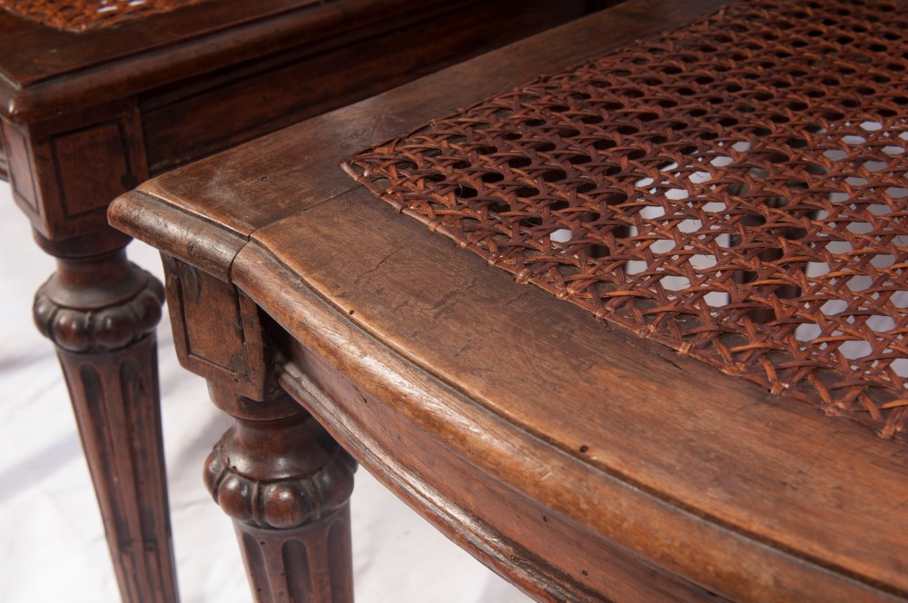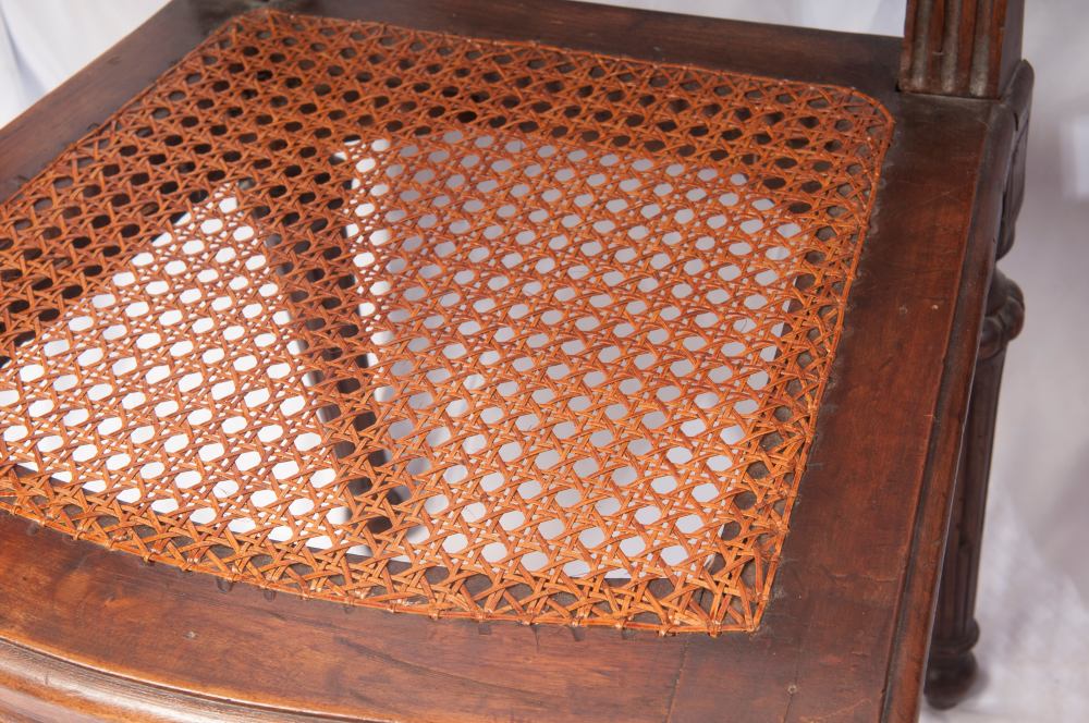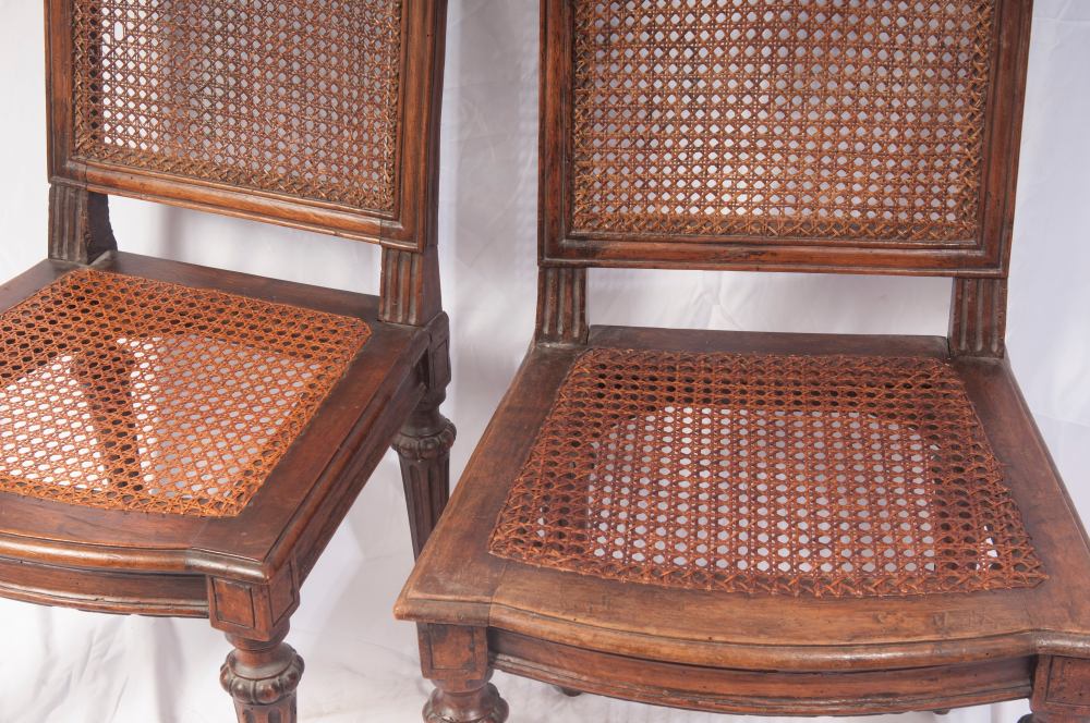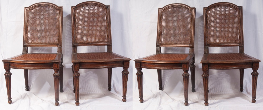 Lotto di quattro seggiolecon seduta ed alzata in paglia di Vienna, gamba tronco conica.