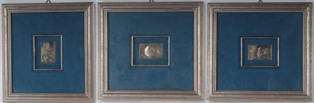 Lotto di tre placche in argento incise a firma di: seconda metà XX secolo plachette 3 x 4,5 cm