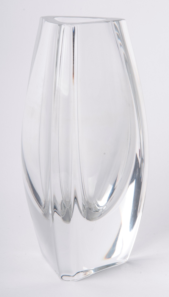Vaso a bulbo triangolare in cristallo Baccarat seconda metà XX secolo 20,5 x 7 cm
