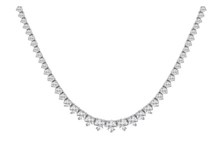 Questo splendido girocollo Rivera è realizzato in oro bianco 14K, con un peso totale di 15,30 grammi. Il design elegante è arricchito da 183 diamanti lab grown di alta qualità, con un peso complessivo di 8,00 carati. I diamanti, di colore F/G purezza VS-SI, offrono una brillantezza eccezionale, rendendo questo gioiello un pezzo unico e prezioso. Perfetto per occasioni speciali, questo girocollo aggiungerà un tocco di lusso e sostenibilità al tuo look. 22 - Rivera Necklace - COMMISSIONE D’ASTA 25%