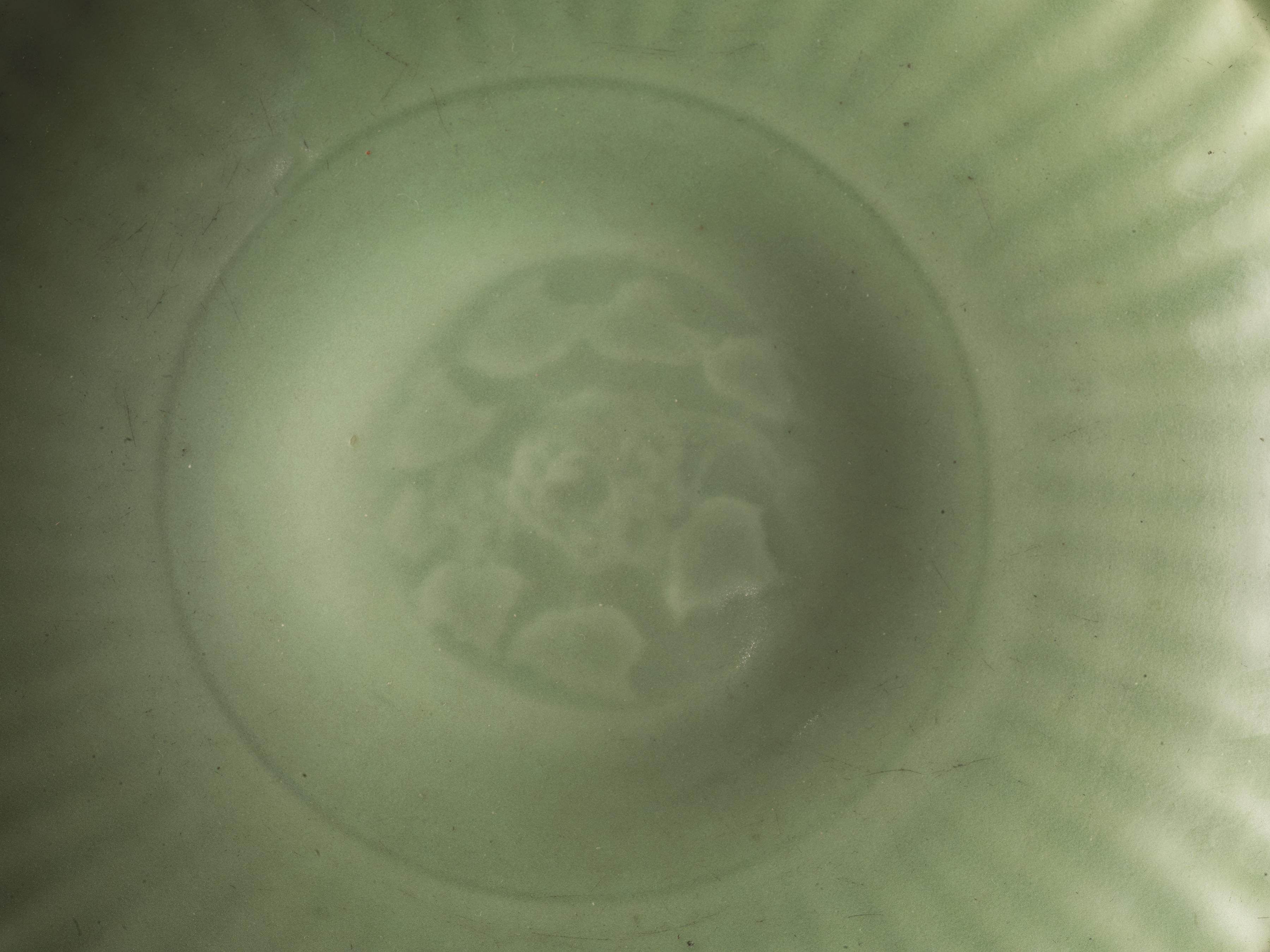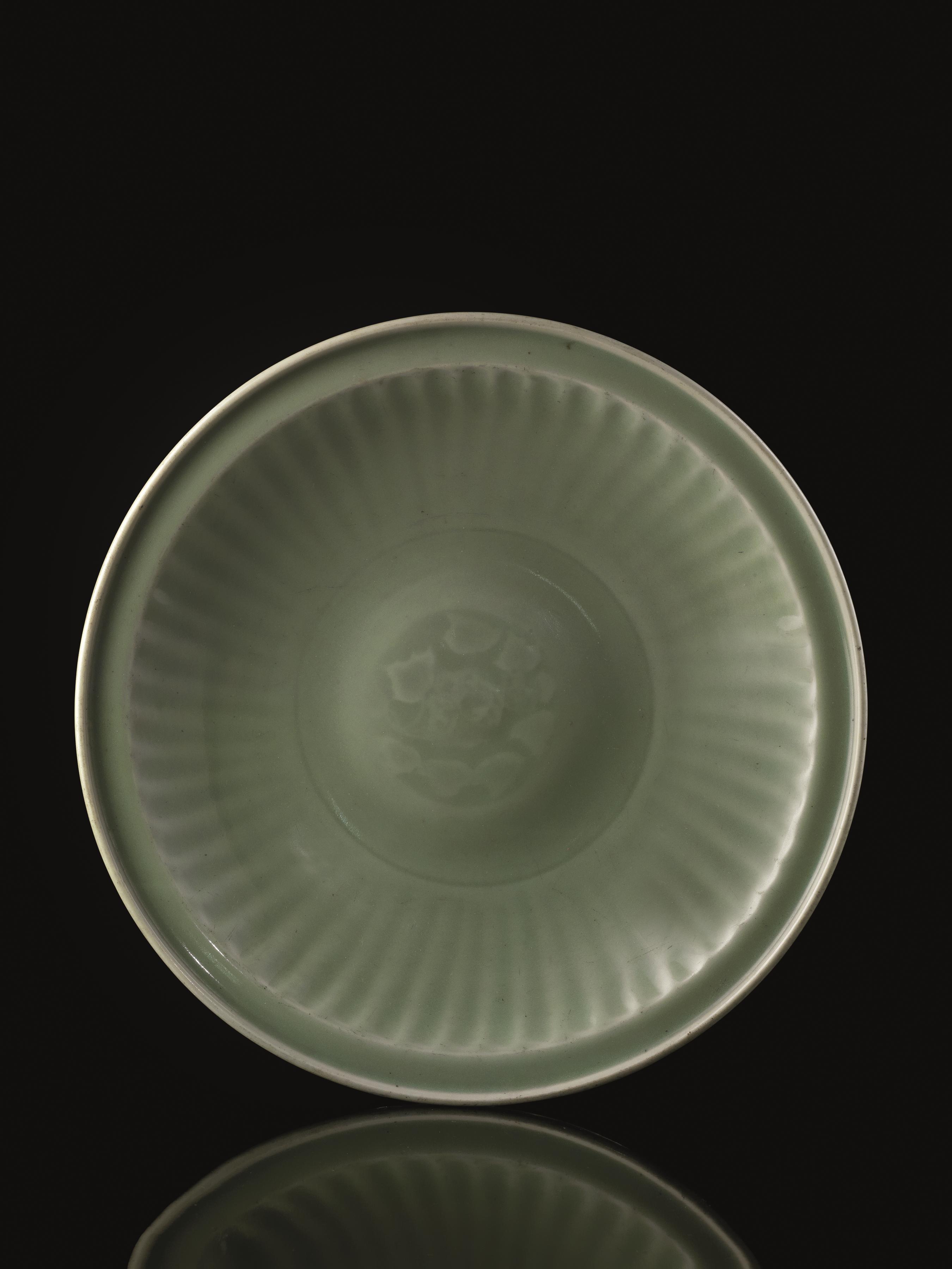 GRANDE PIATTO, CINA, DINASTIA MING in porcellana celadon, bordo canneté e...