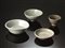 in porcellana celadon, le ciotoline e un piatto decorati con metivi geometrici, uno dei piattini è invetriato verde chiaro, misure varie, diam. cm 12 la più grande (4)