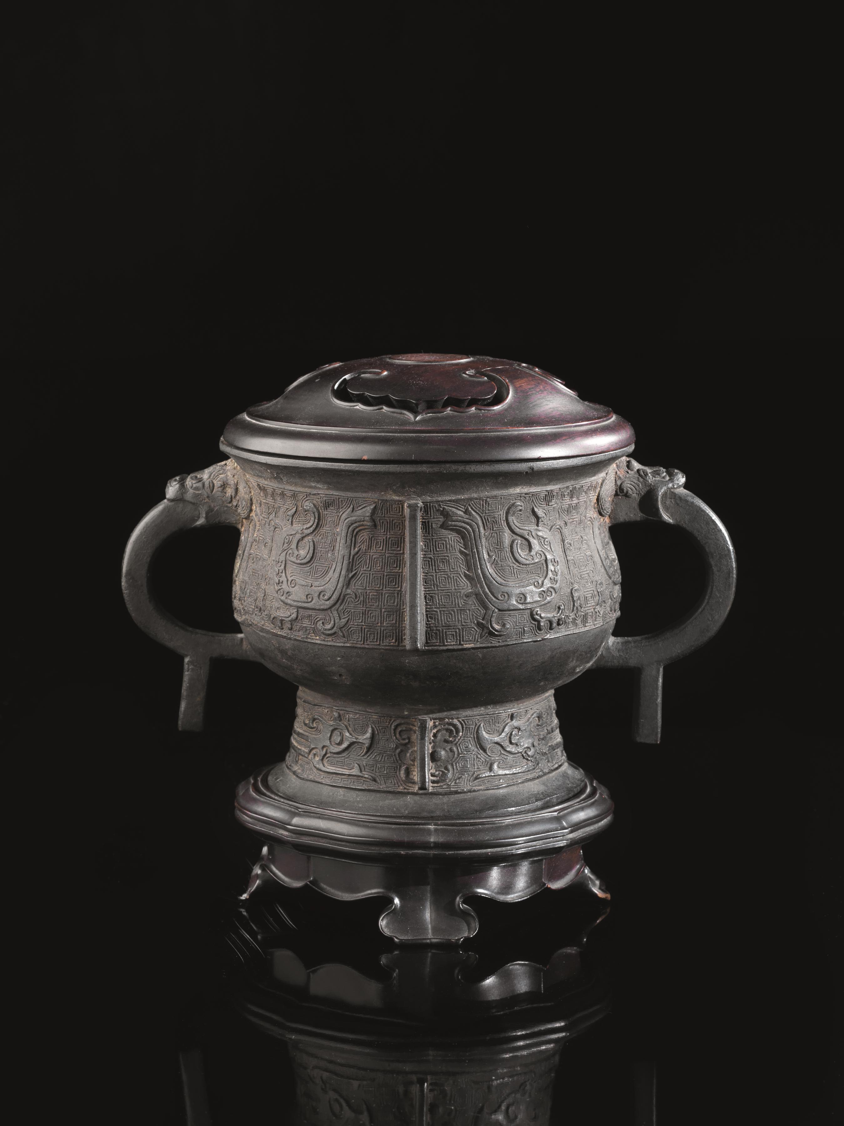 INCENSIERE, CINA DINASTIA QING, SEC. XVIII in bronzo con decoro di grado...