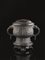 in bronzo con decoro di grado stilizzato, il coperchio in legno, alt. cm 14, poggiante su base in legno