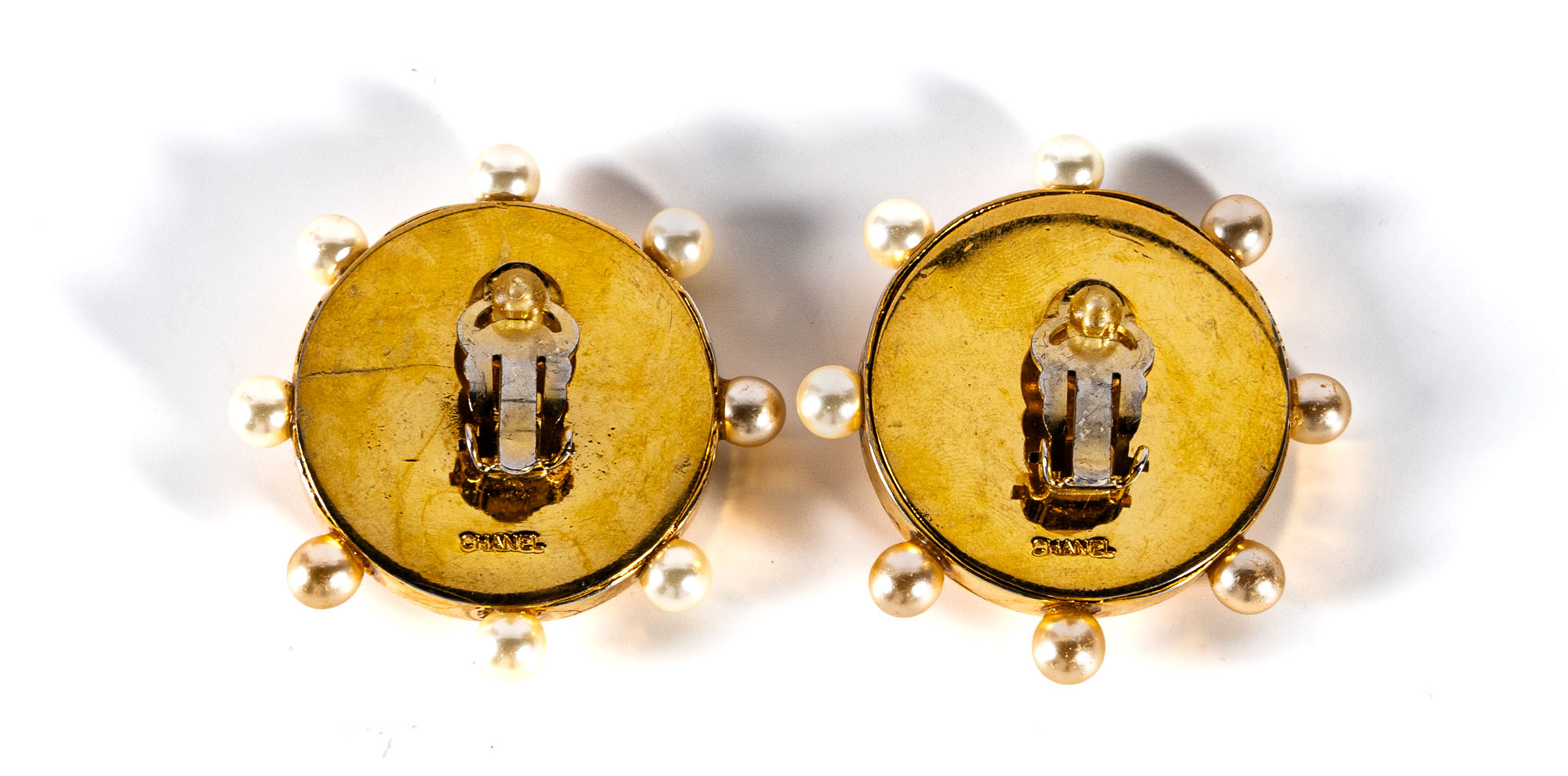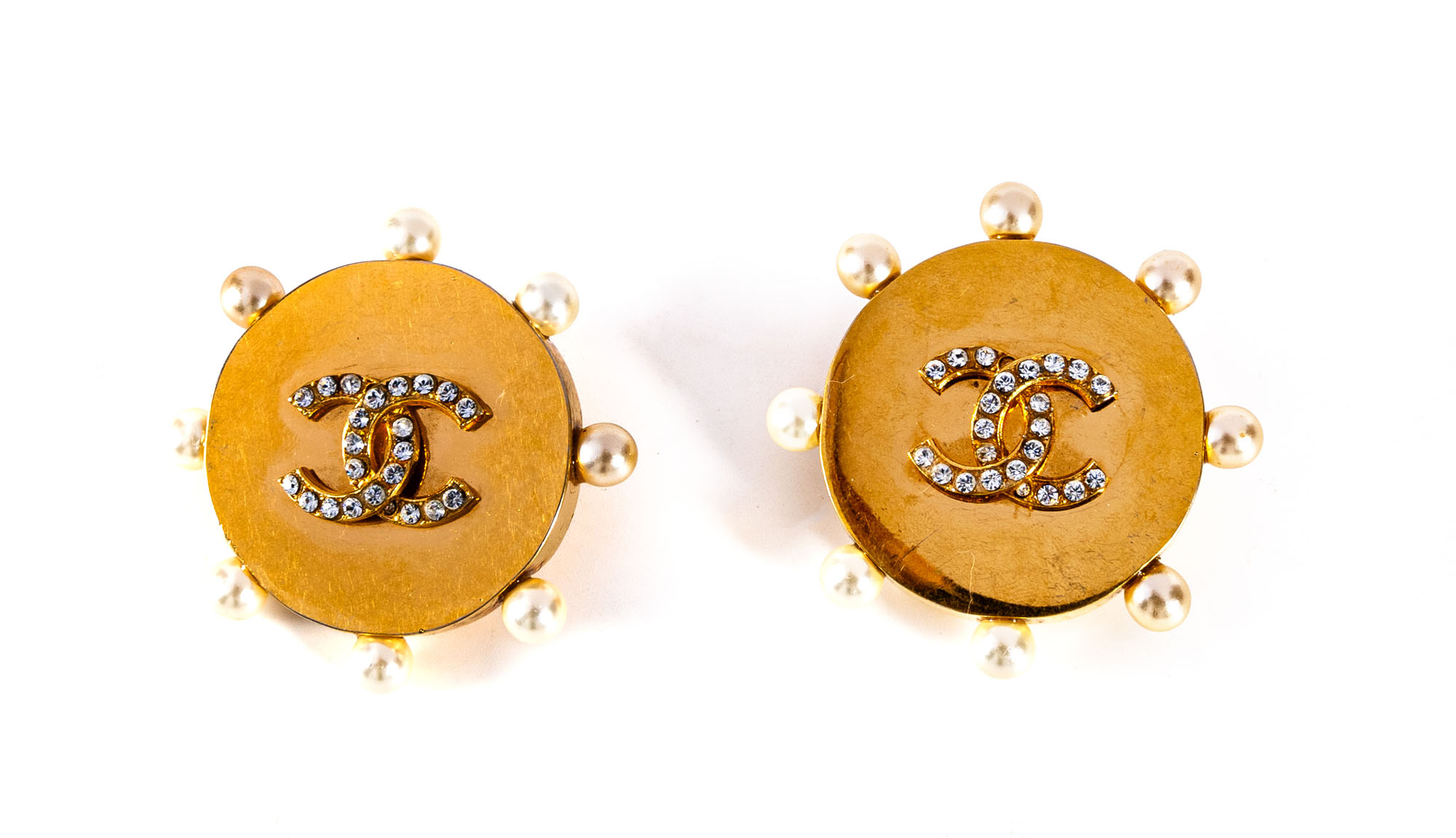 CHANELOrecchini a clip vintageIn metallo dorato, finte perline e vetro4,5 x 4,5 cmIn buone condizioni