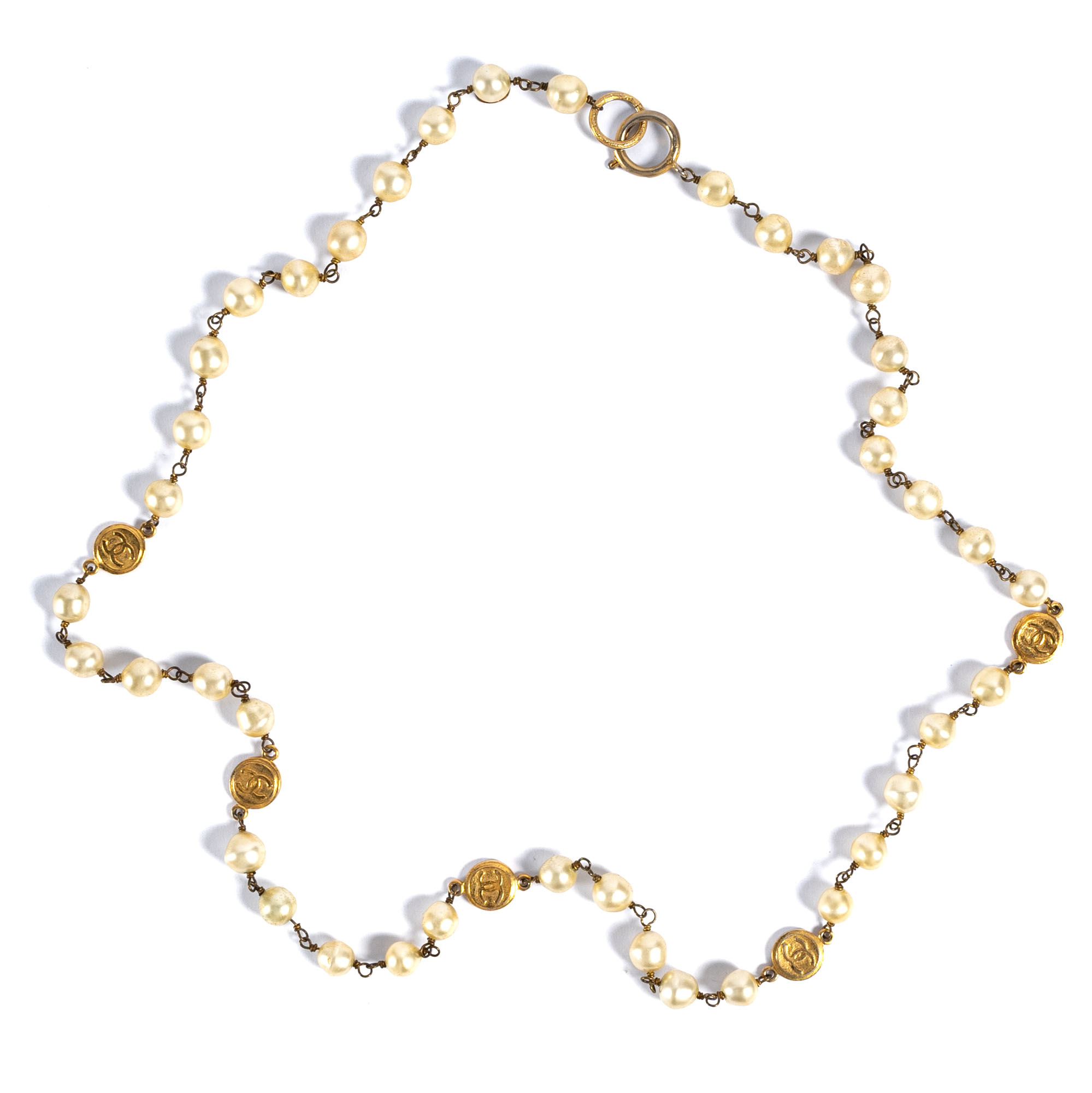 Lotto 23 | Sautoir con finte perle e medaglie CC
