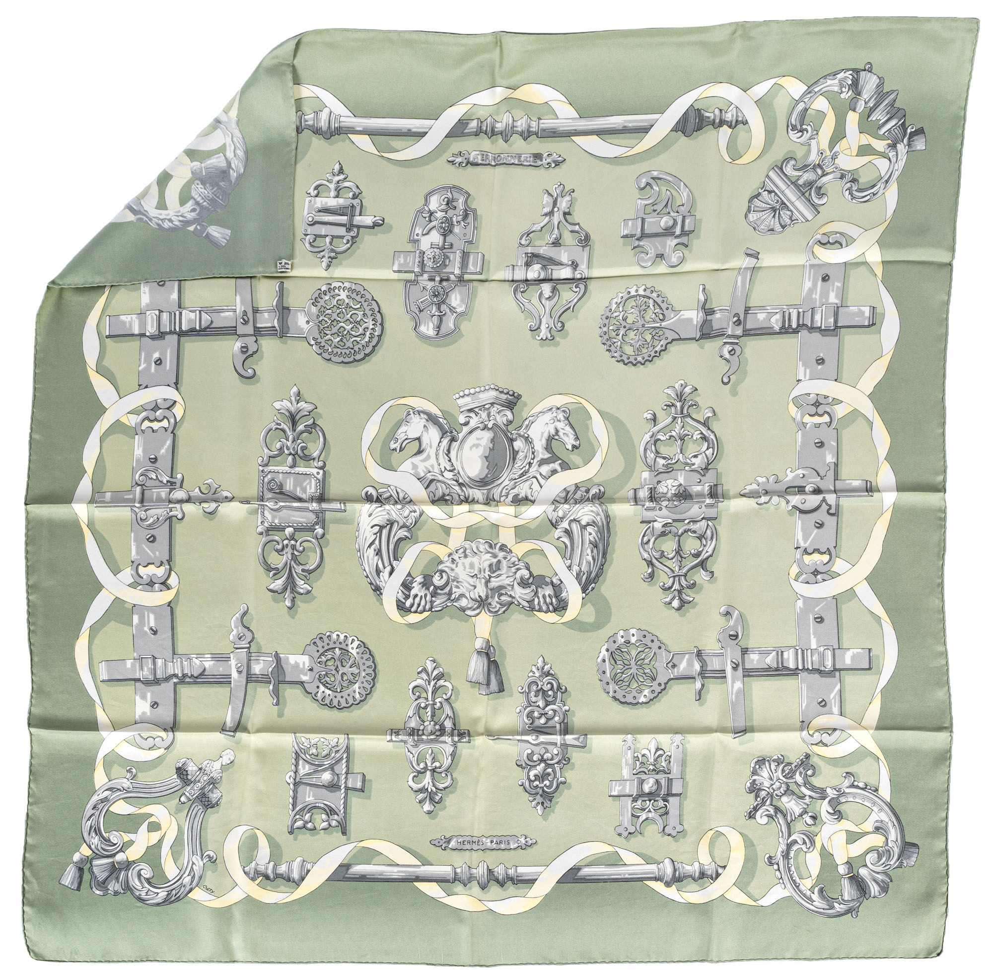 HermèsFoulard 'Ferronnerie'Prima edizione 1970, Riedizione 1989/RectaIn seta, Caty Latham90 x 90 cmCon etichetta e scatolaIn buone condizioni